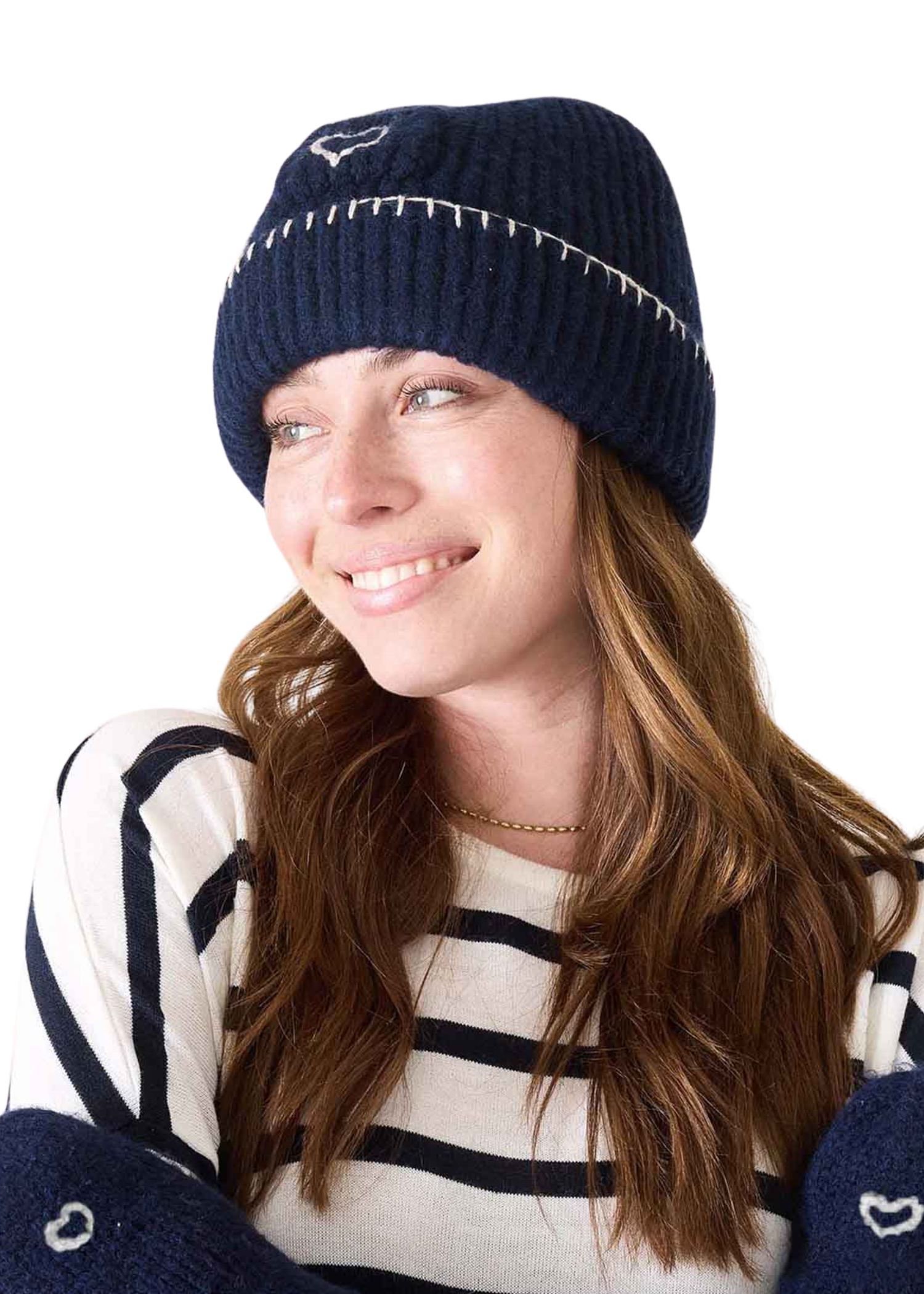Super-soft, ribbed and perfect for the girl adventuring in all weather. With darling and durable whipstitch detail, this beanie ensures fair winds. The small embroidered heart stitched onto the baby pocket is for keeping your love notes close wherever you are.