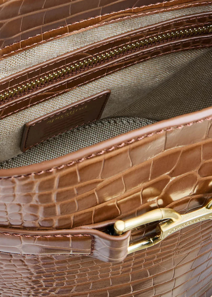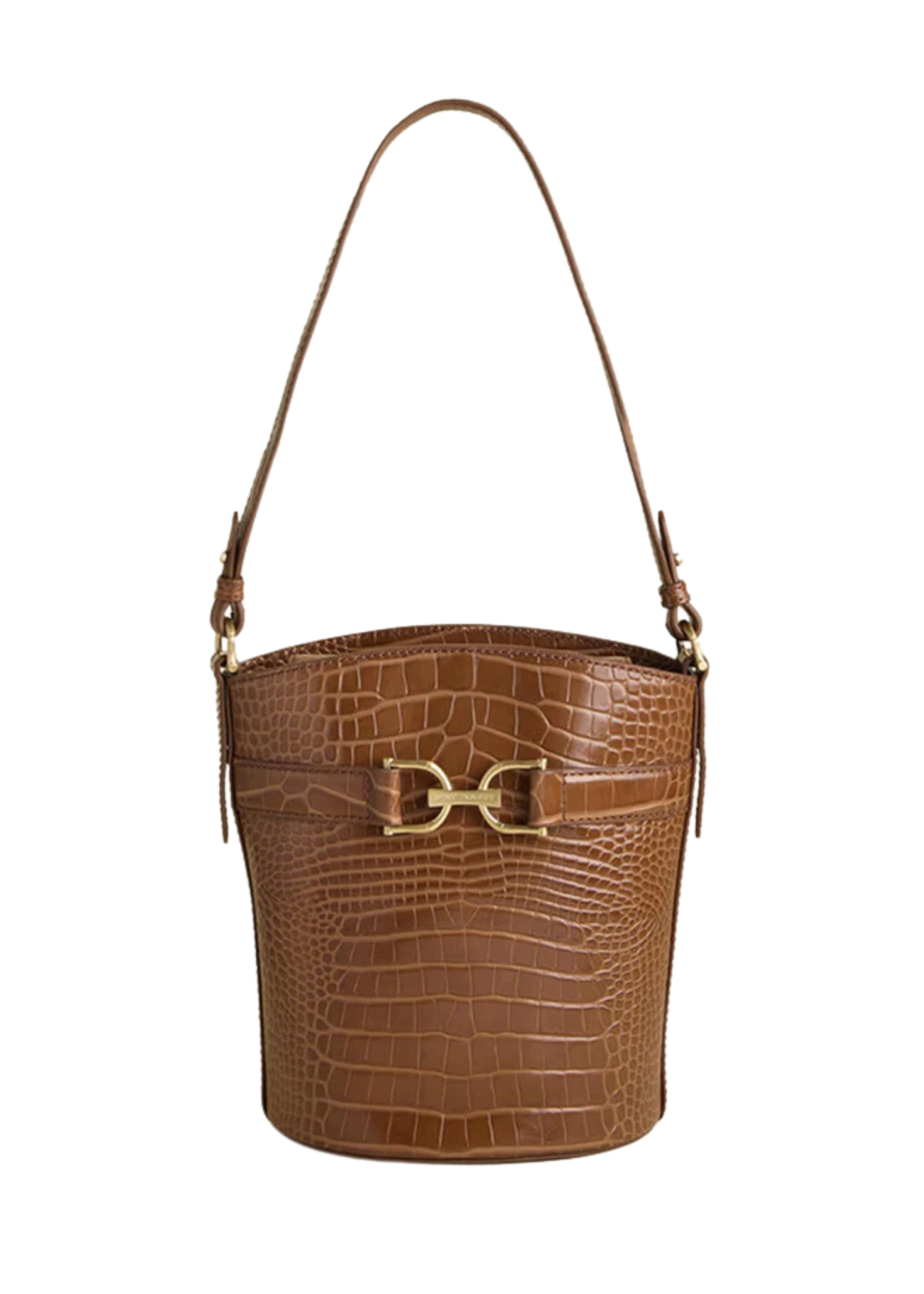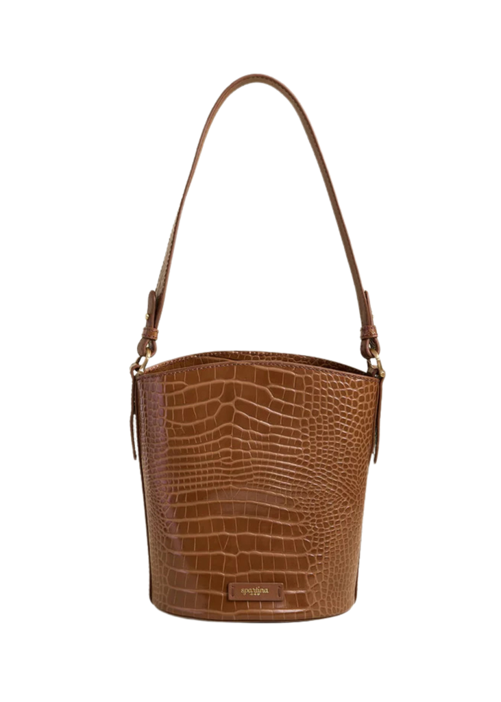 Meet the Siren Eva Bucket bag in a luxurious penny croc leather. Open the secure magnetic flap closure to reveal a spacious interior with 1 slip pocket and 1 zip pocket. The gold bamboo style D rings add a luxe touch, while the removable crossbody strap offers versatile wear. This bag is perfectly sized to hold all your daily essentials.