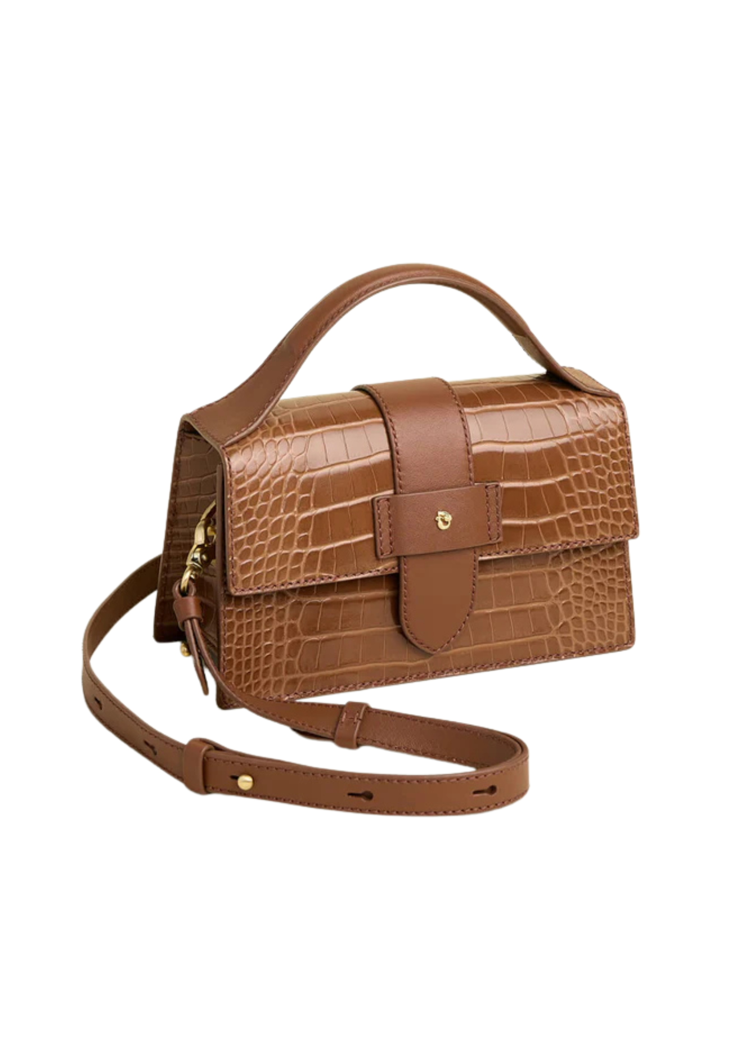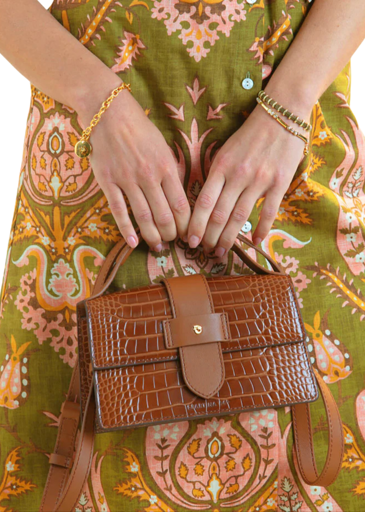 All the style in this sleek, penny croc leather, Siren Lela Crossbody. It features a faux belt magnetic closure and 2 interior pockets. This trendy crossbody also converts to a handheld and will quickly become your go-to accessory.
