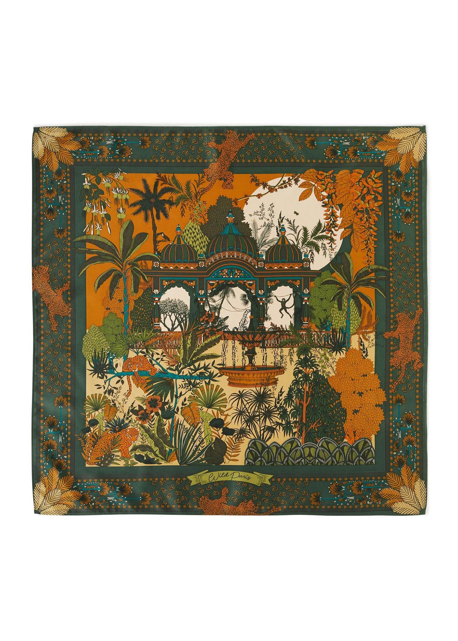 The Amber Palace Scarf is a stunning blend of vintage charm and modern sustainability. Featuring an intricate palace-inspired print in warm olive tones, this scarf adds an elegant touch to any outfit. Made from recycled polyester, it's both stylish and eco-conscious. Its mini square shape allows for versatile styling-wear it around your neck, tie it to a bag, or style it in your hair for a chic accent.