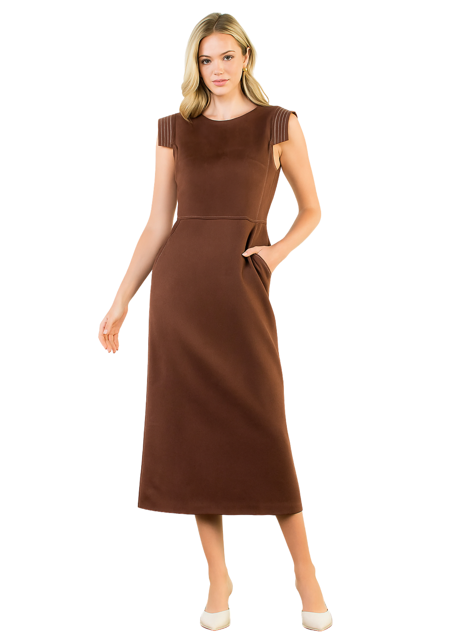 An elegant dress for any Fall occasion! She's the perfect backdrop for your turquoise jewelry or leopard handbag.
