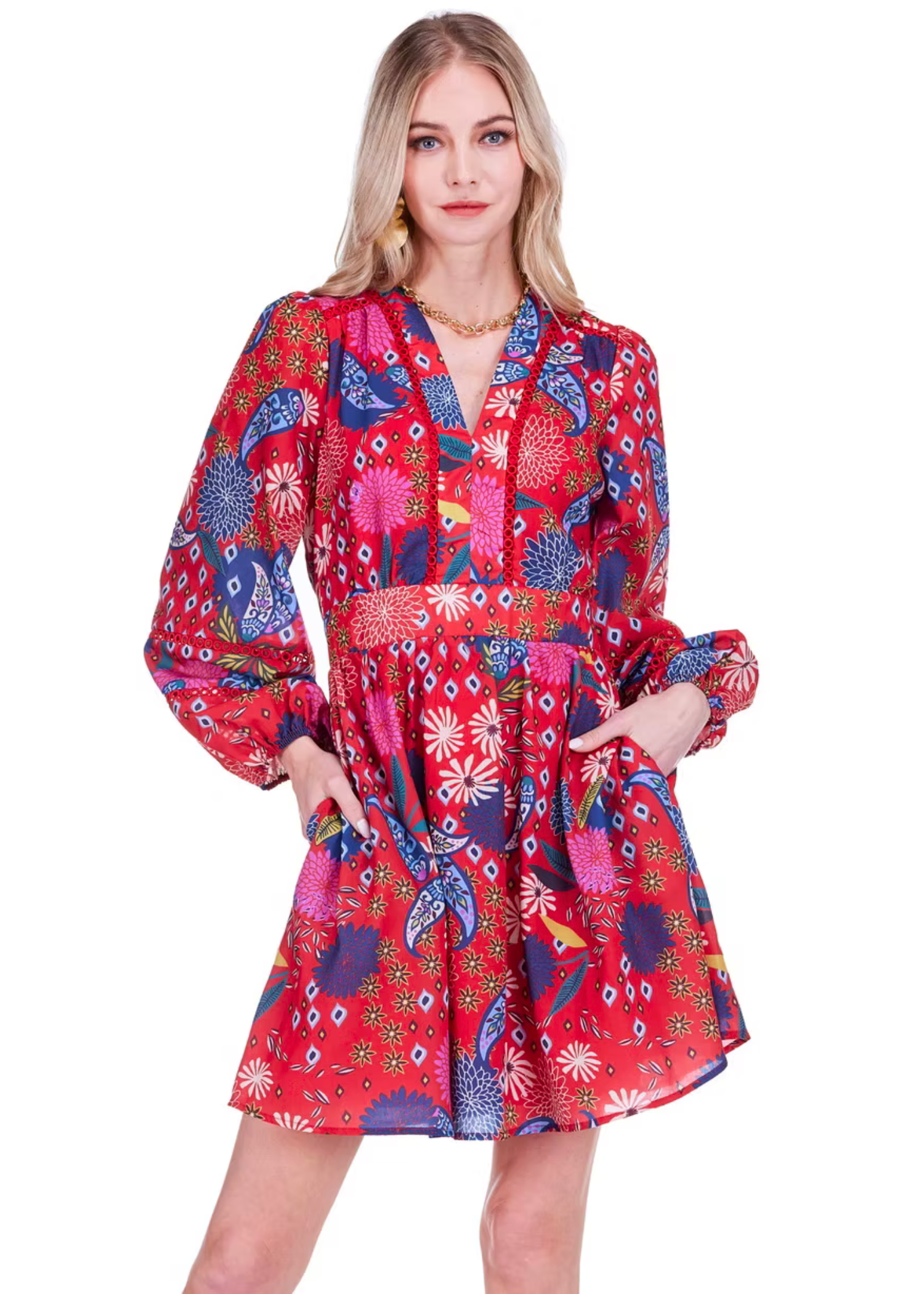 You can never go wrong with a long sleeve mini dress, and this Firework pattern is just the one you're looking for!