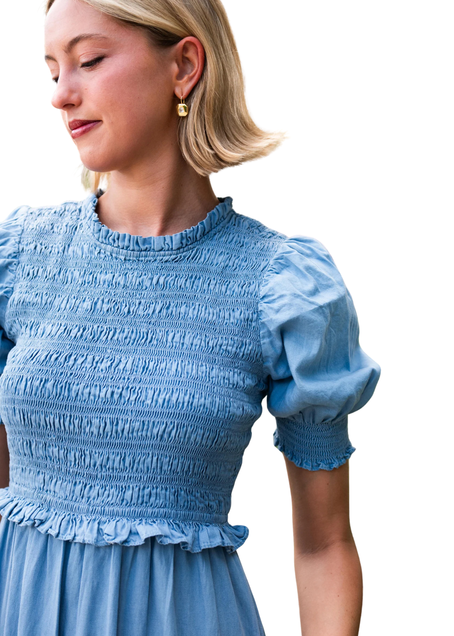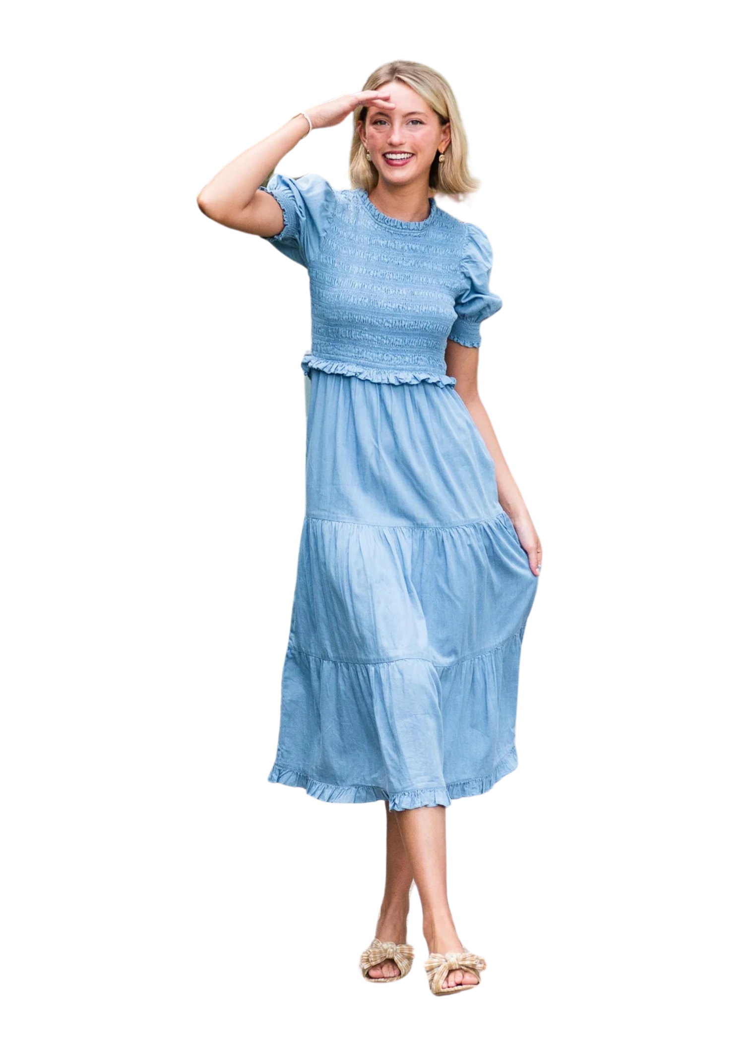 With the season of fall fêtes, cozy brunches, and craft beer tasting gatherings upon us, this show-stopping frock is sure to impress with its intricate ruffle details, fun tiered skirt, and ultra-flattering smocked bodice. Pair with a clutch and simple gold jewelry for a look that feels perfectly chic for an evening of seasonal entertaining.
