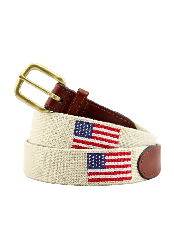 AMERICAN FLAG NEEDLEPOINT BELT - LIGHT KHAKI