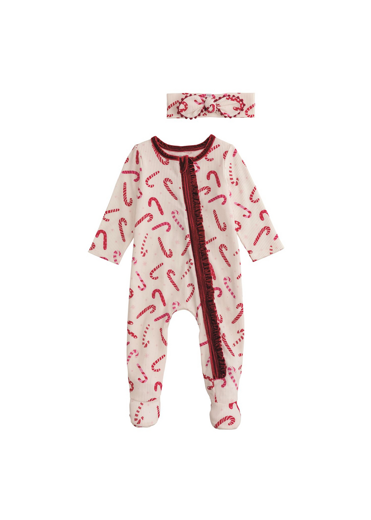GIRLS CANDY CANE SLEEPER AND HEADBAND SET