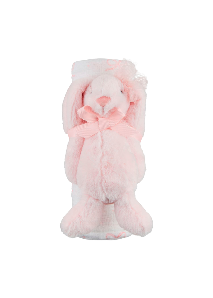 BOW SWADDLE & BUNNY RATTLE SET