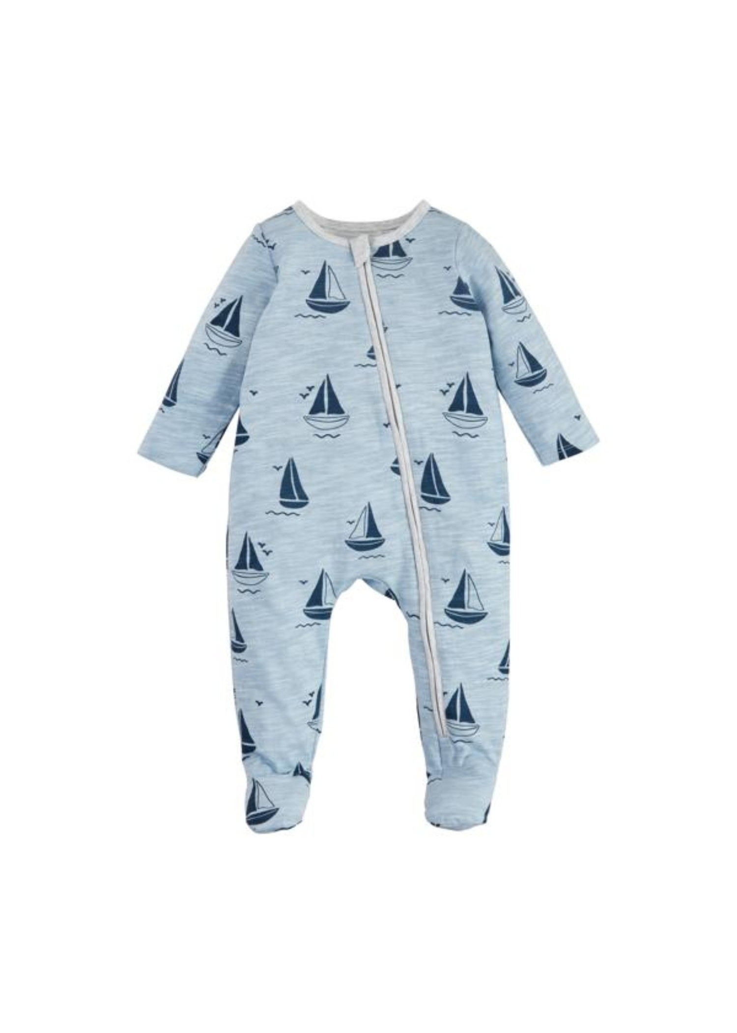 Sailboat Baby Sleeper: This adorable footed sleeper is crafted from soft, breathable cotton slub, ensuring your little one stays comfortable and cozy. Made from 100% cotton, this sleeper is gentle on delicate skin and perfect for keeping your baby snug during naps and nighttime. The convenient snap closures make diaper changes a breeze, while the footed design keeps tiny toes warm. Ideal for everyday wear or as a thoughtful gift for new parents.