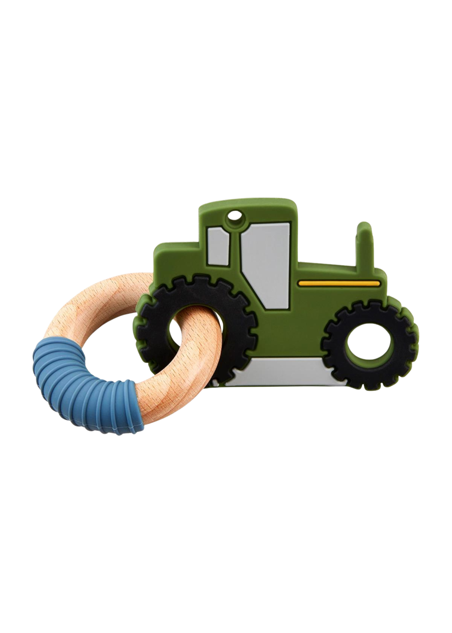 This silicone teether is playful and will distract baby from teething troubles. This fun and colorful teether is dishwasher safe and food grade. The silicone teether features a bauble ring.
