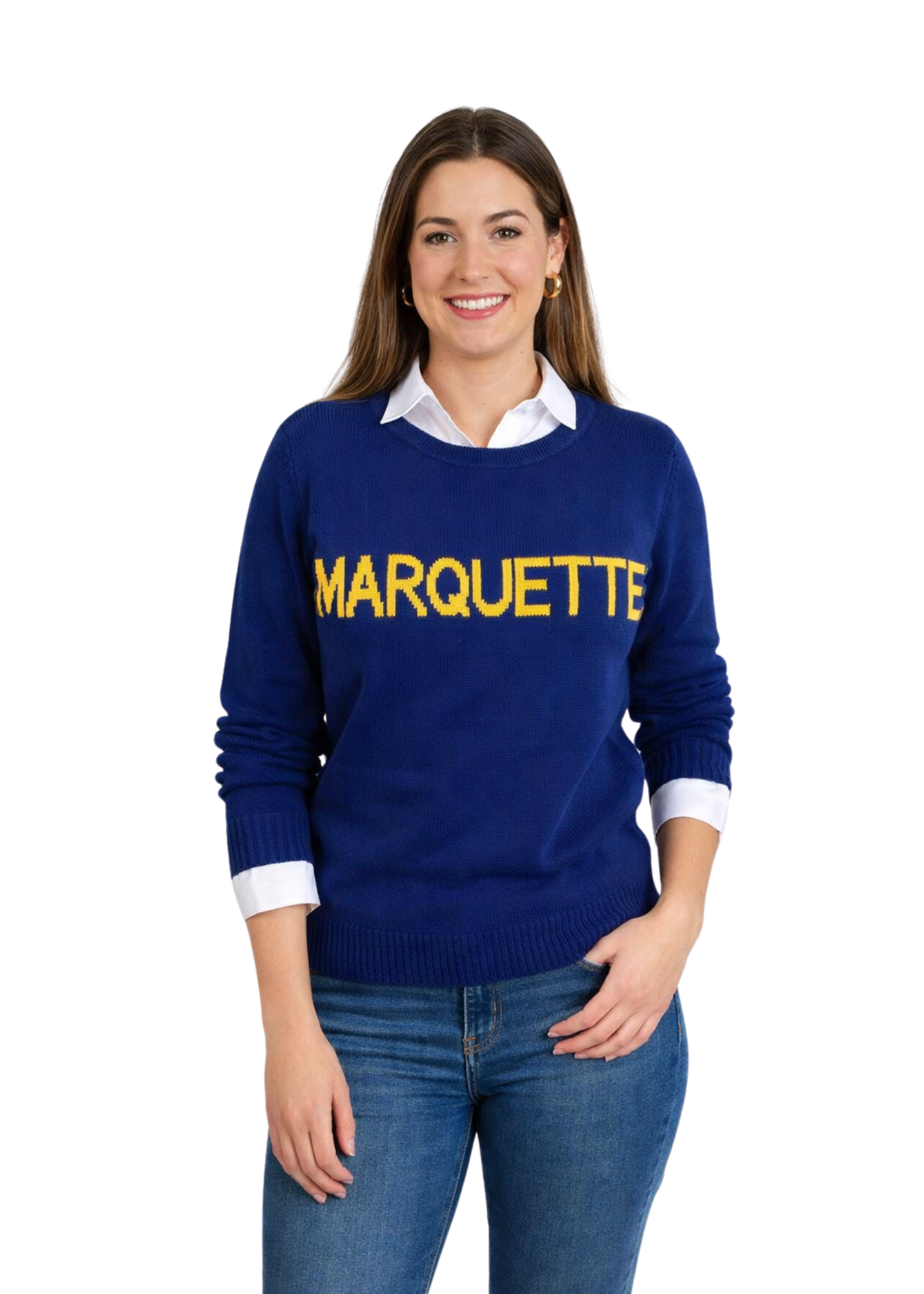 A custom sweater exclusively at The Navy Knot! This sweater is for showing off your Marquette pride throughout every season.