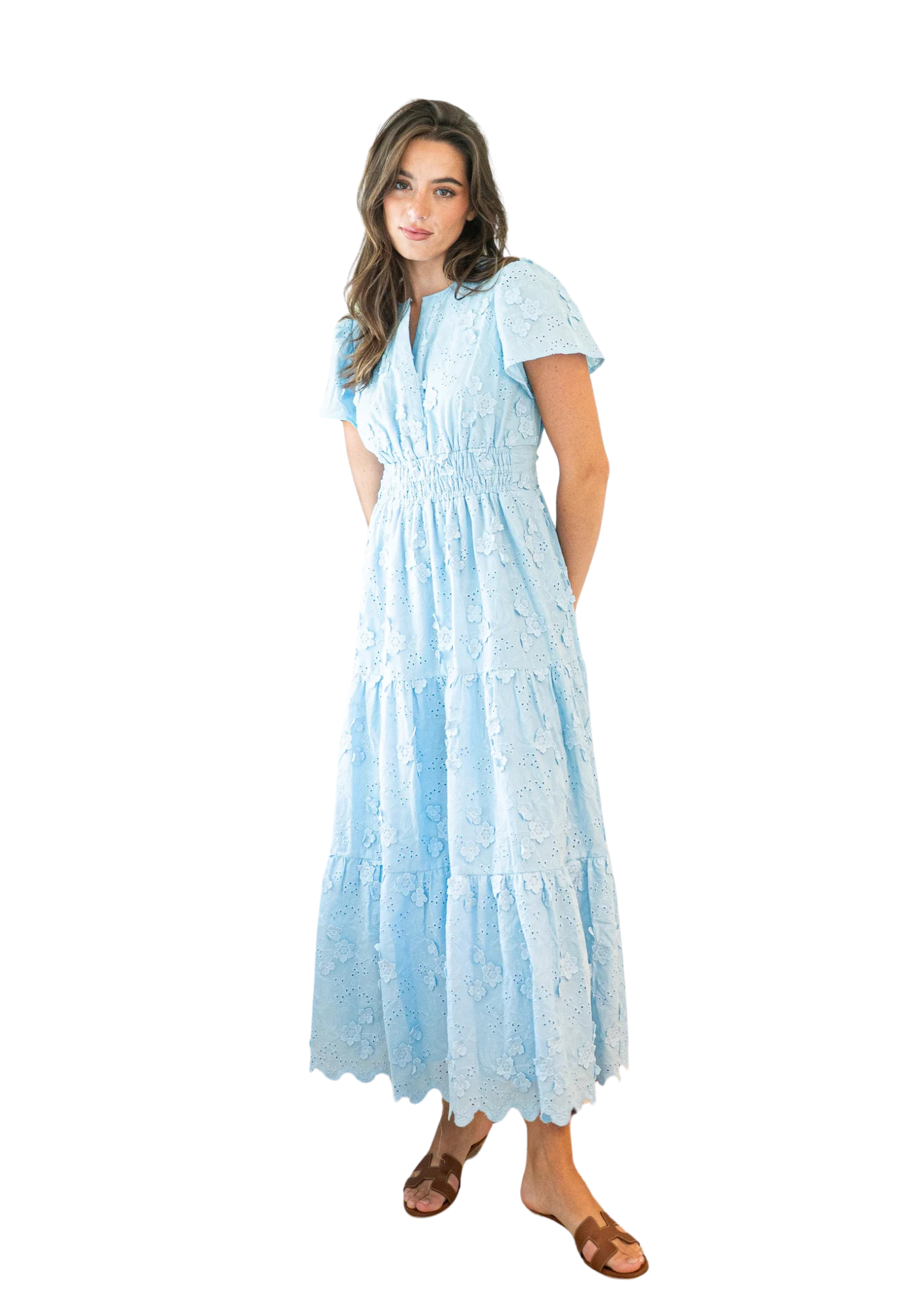 This fan favorite is back and ready for spring! Need to elevate your wardrobe essentials? We have the perfect solid midi dress for warm weather adventures. Easy to dress up or down, we'll be pairing this one with our favorite wedges for elevated evenings of sipping rosé poolside. The special floral eyelet is sure to make transitioning from day to night a breeze, making it a must-have for this season and beyond.