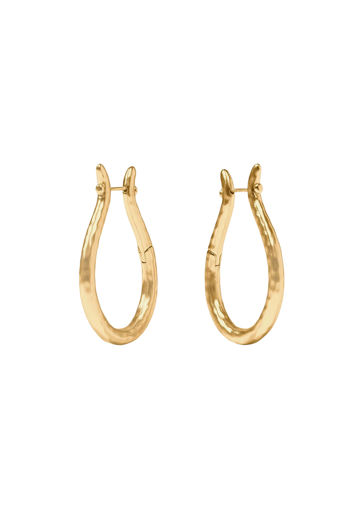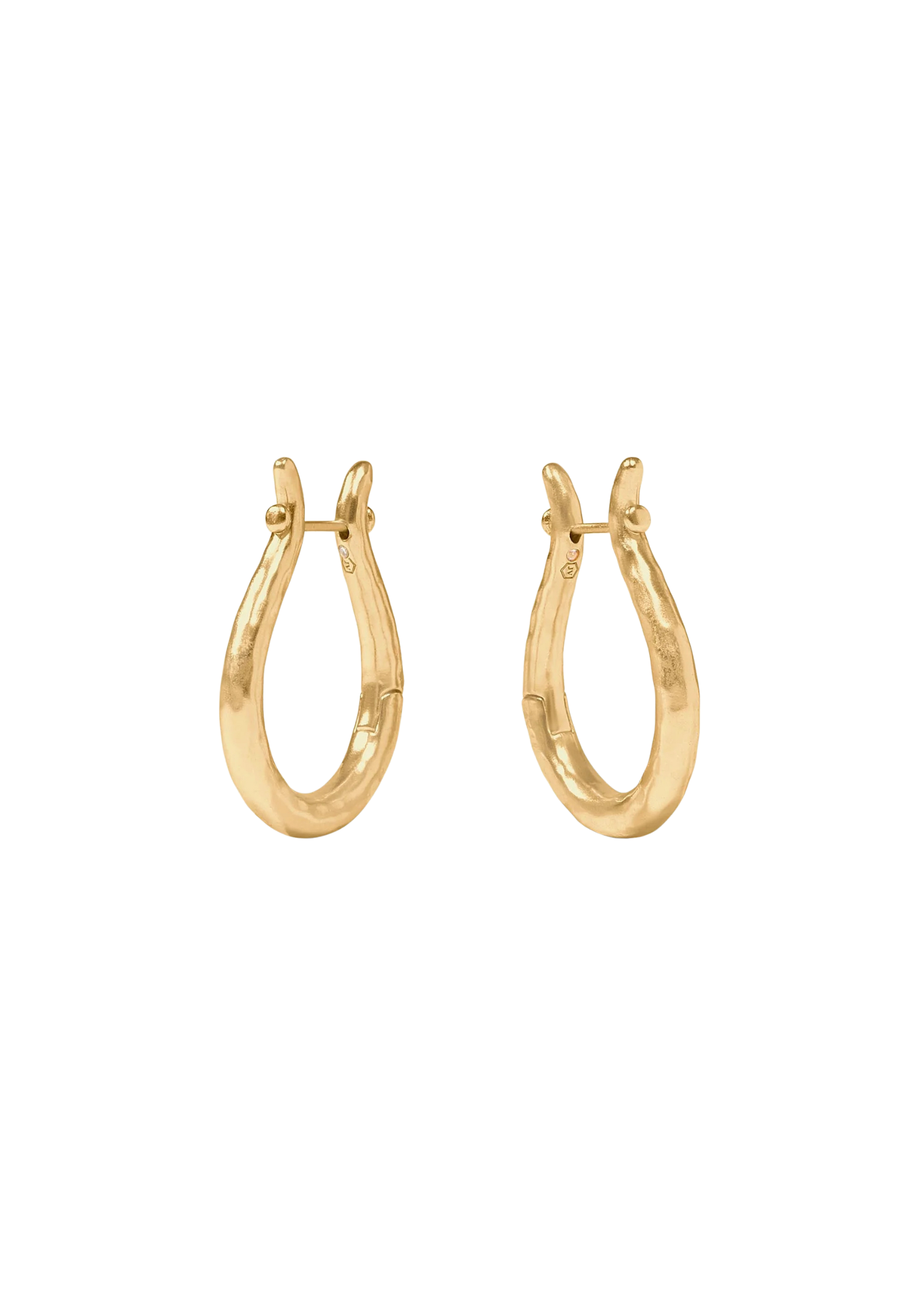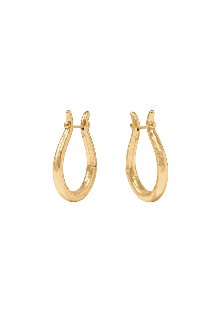 Brimming with timeless equestrian elegance, these lightly hammered golden hoops recall the form of vintage bridle rings.