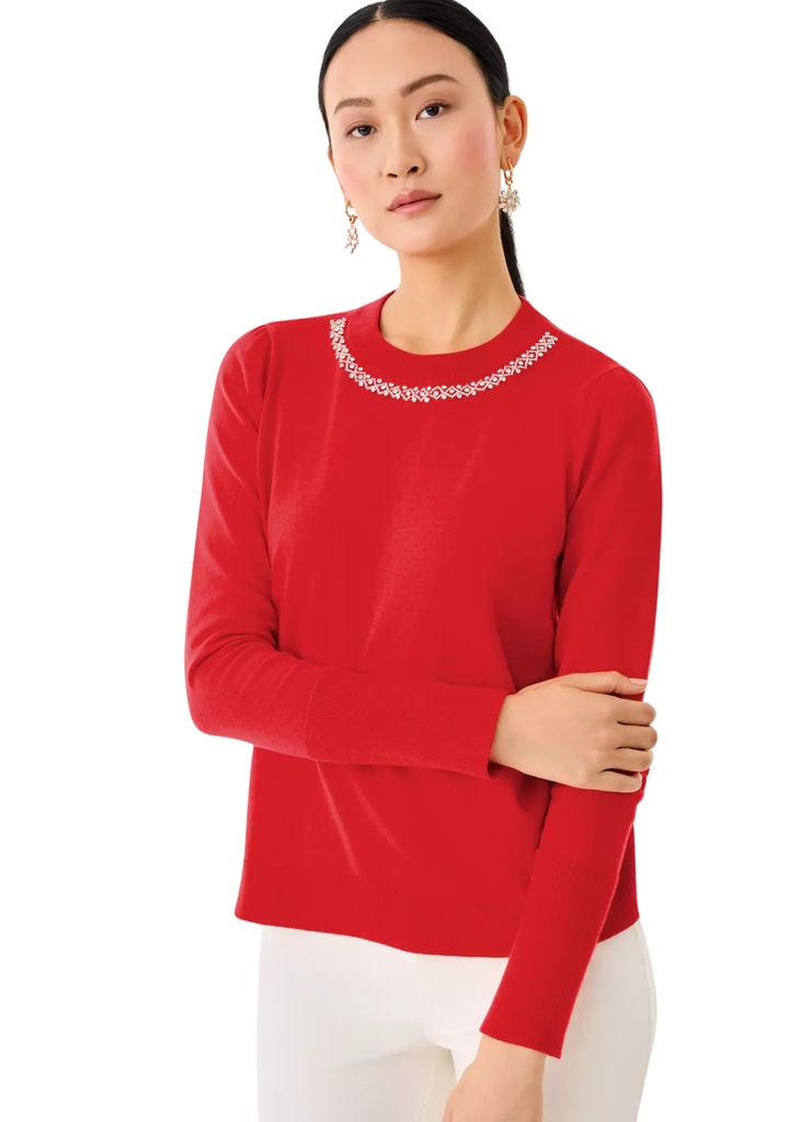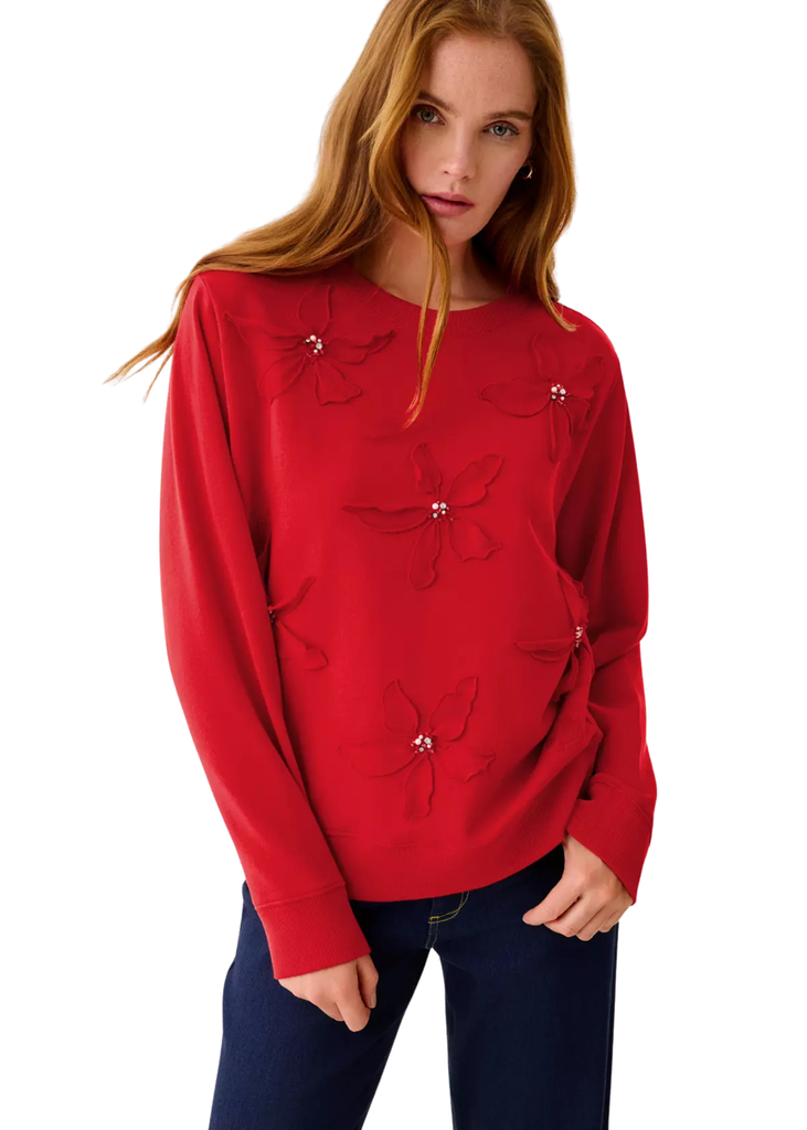 BALLAD POINSETTIA EMBELLISHED SWEATSHIRT