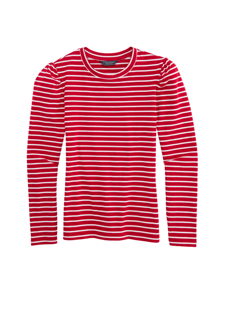 STRIPED PUFF SLEEVE T-SHIRT - RED