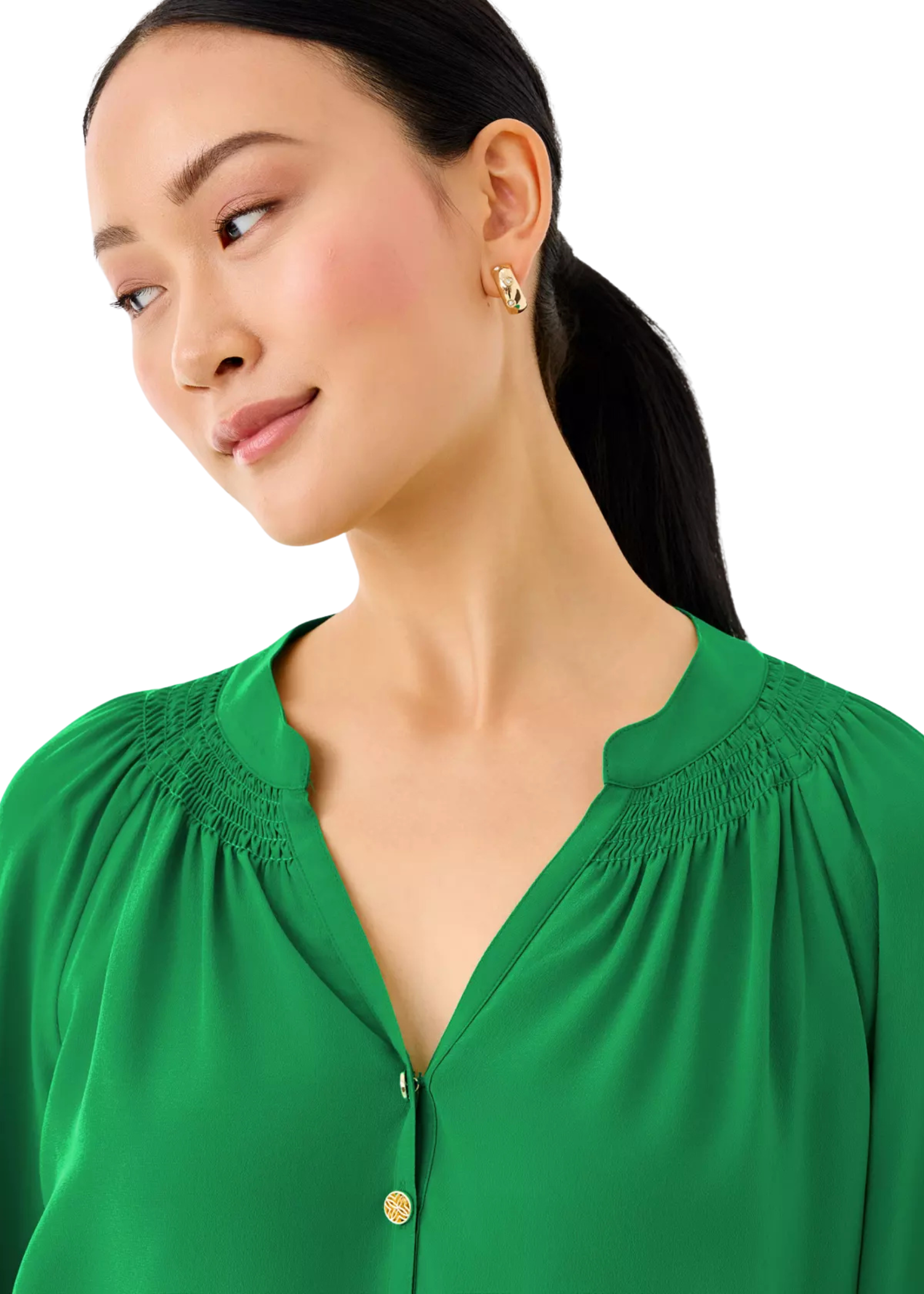 A tried-and-true wardrobe staple, the Elsa Silk Top can be dressed up or down. Pair with jeans, leggings, shorts, or a skirt to make this elegant pullover top your own.