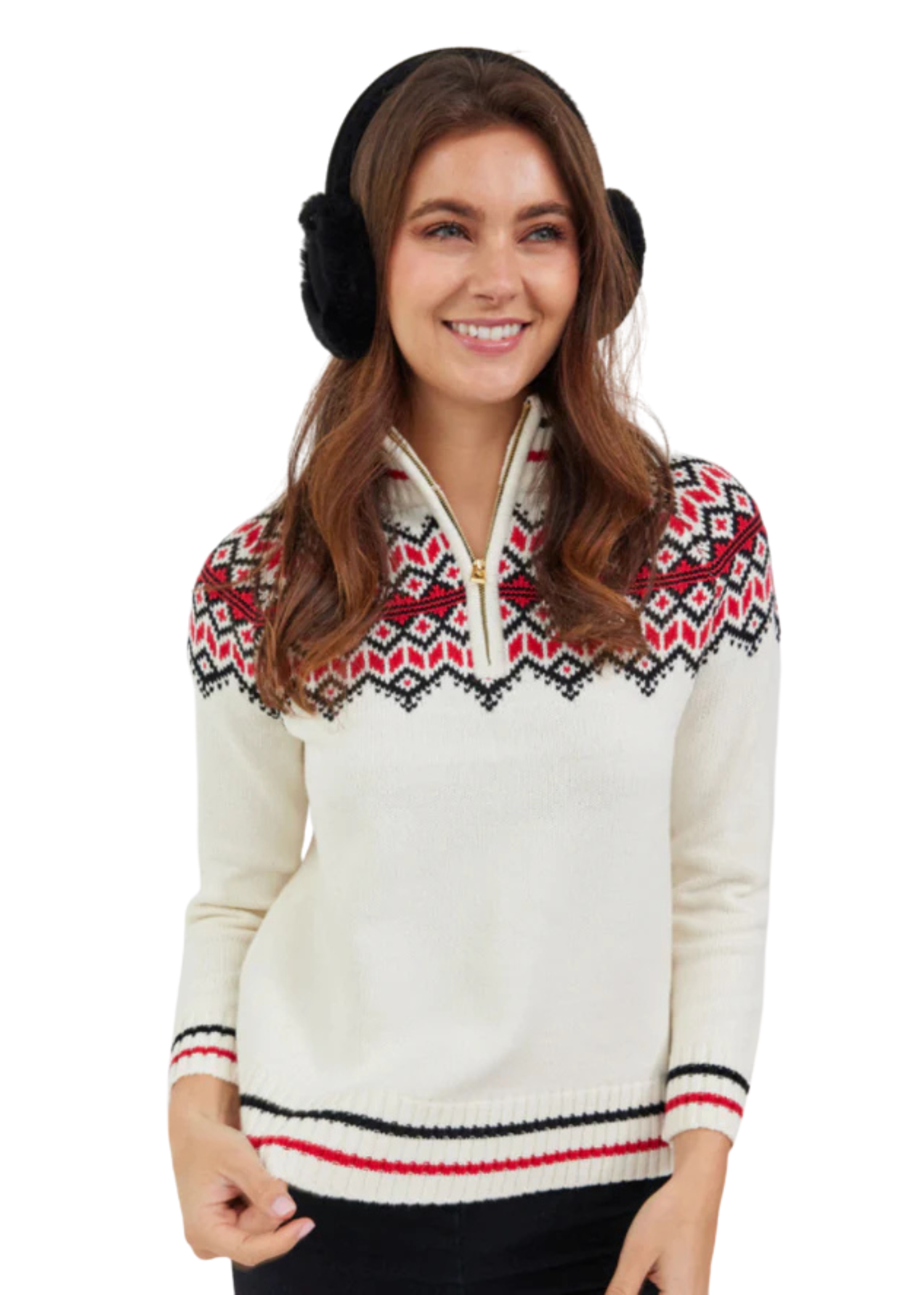 Head into winter with the coziest layer! Spun in an ultra-soft merino wool, this Fair Isle sweater is ready to elevate your après-ski wardrobe. We love the intricate red and white stitching that sets this piece apart from the everyday basics. We'll be pairing this one with flared athleisure pants, cozy slippers, and of course, a steaming cup of cocoa.