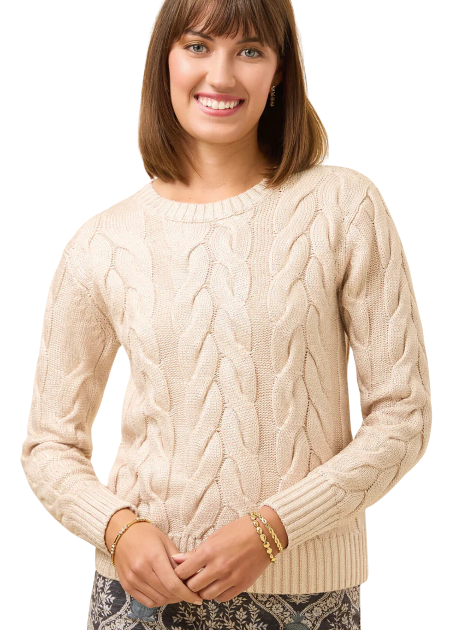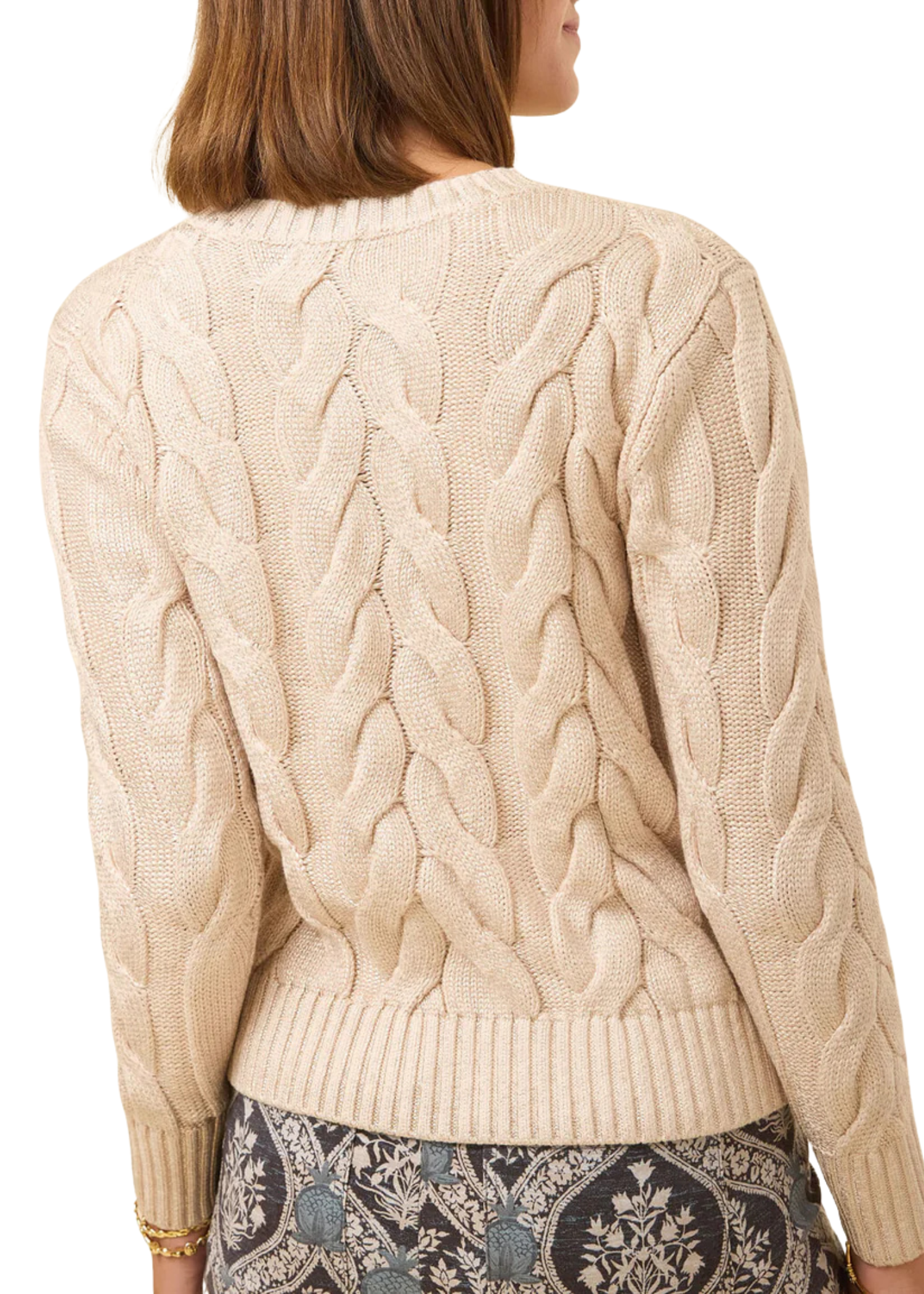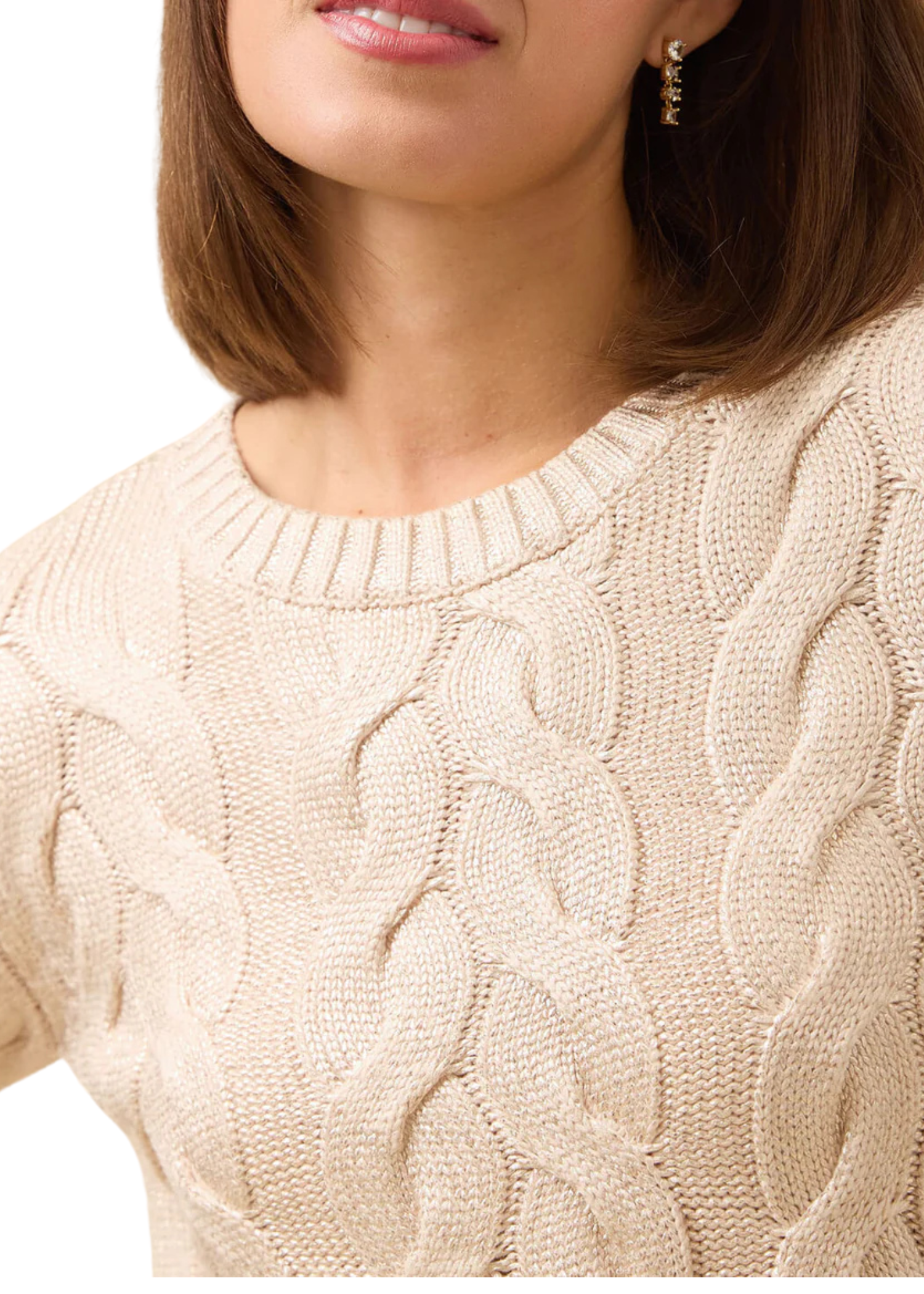 Soft and comfortable with long sleeves and a relaxed fit, this 100% cotton sweater is adorned with a champagne foil that adds a luxe, eye-catching metallic detail. She's an elevated choice for both everyday outings and celebratory affairs.