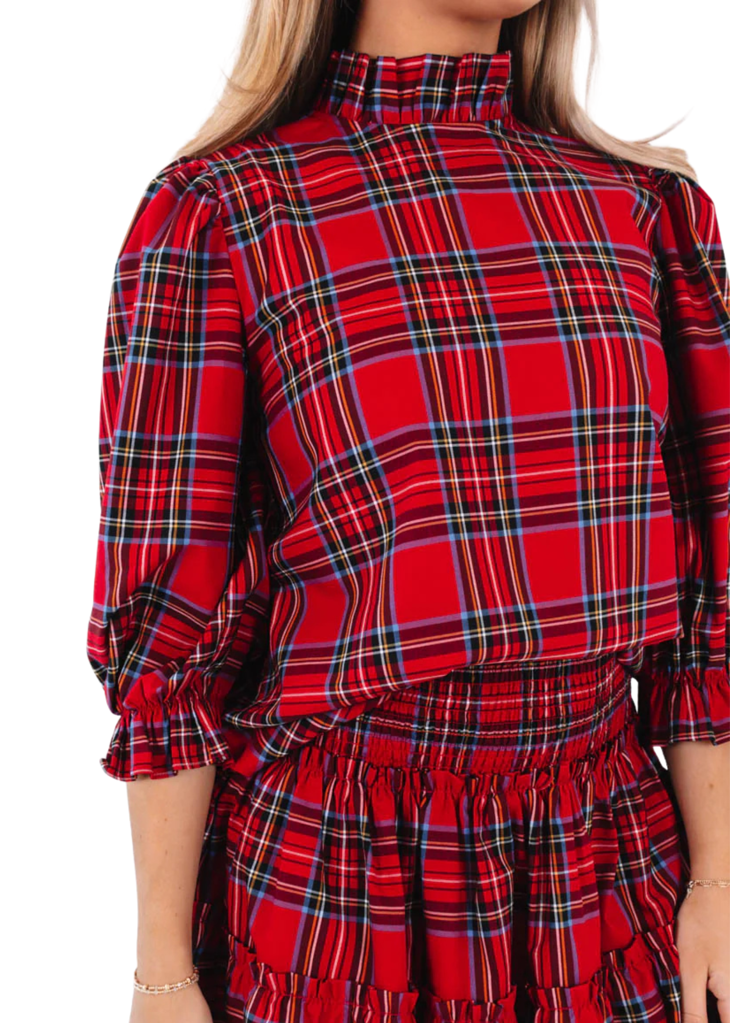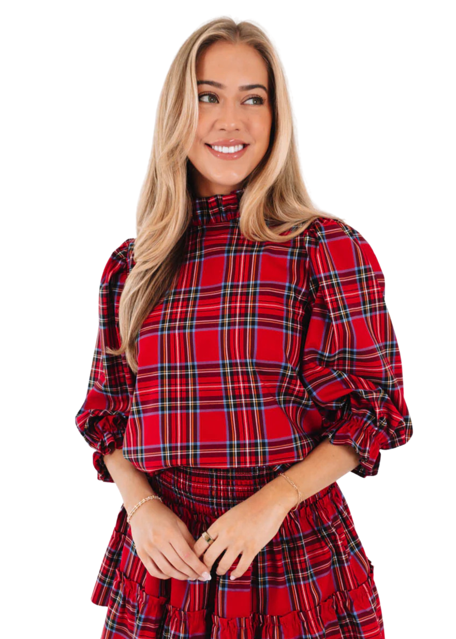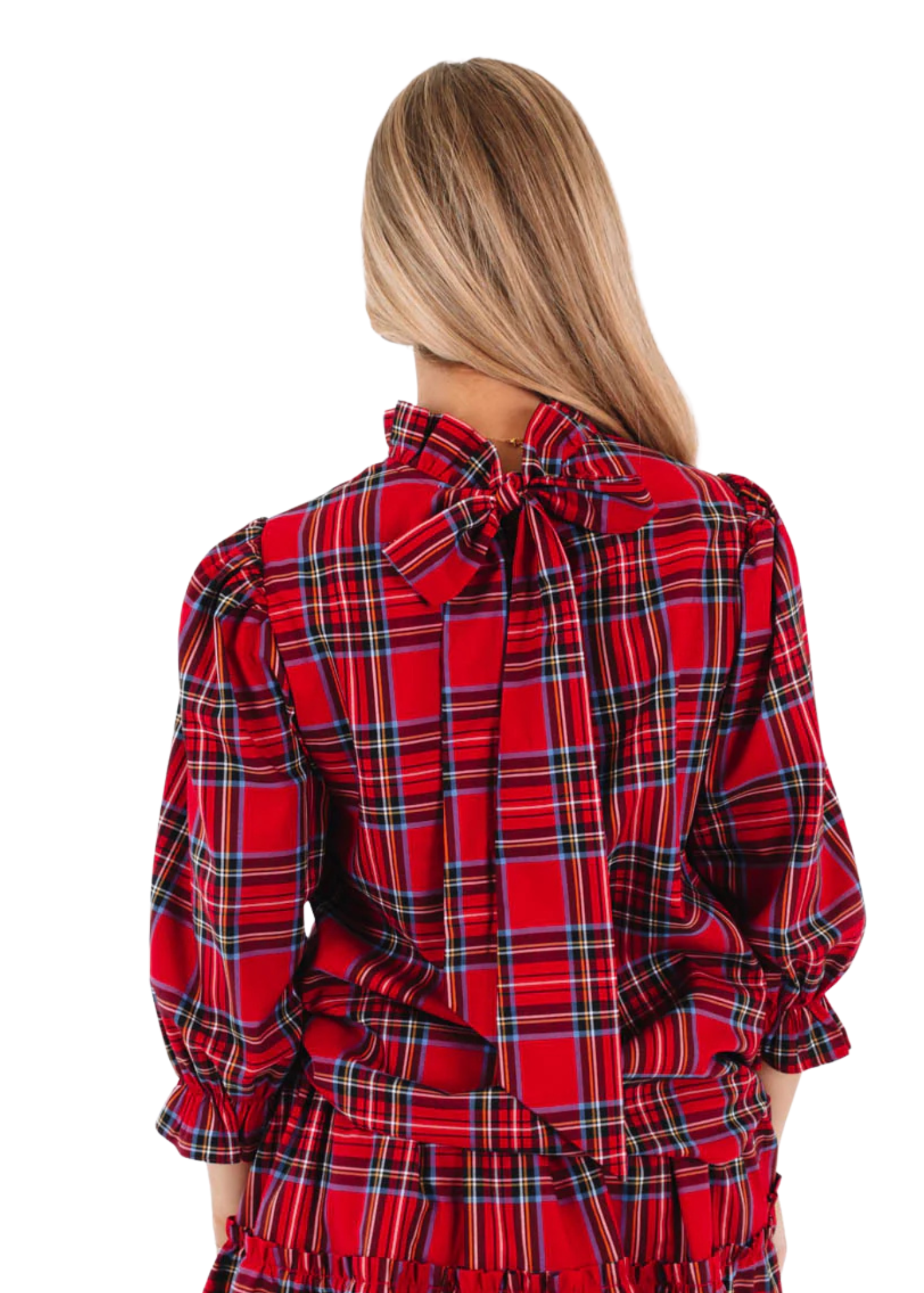 Add a festive touch to your holiday wardrobe with this red plaid long sleeve top, designed with a darling tie bow in the back and a ruffled neckline. The cheerful plaid & graceful accents add a classic, seasonal charm - perfect for joyful gatherings & twinkling holiday moments.