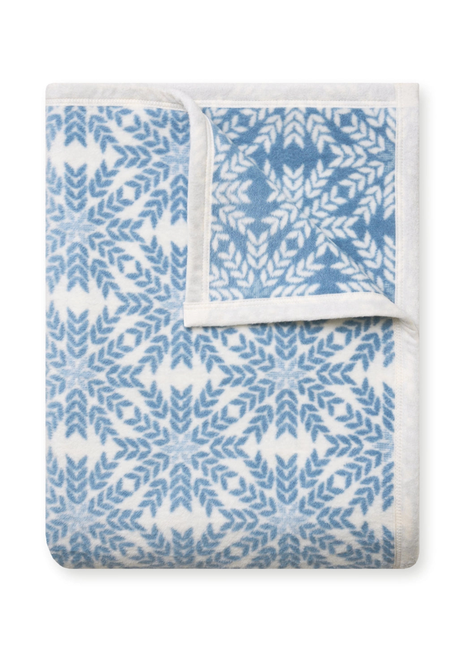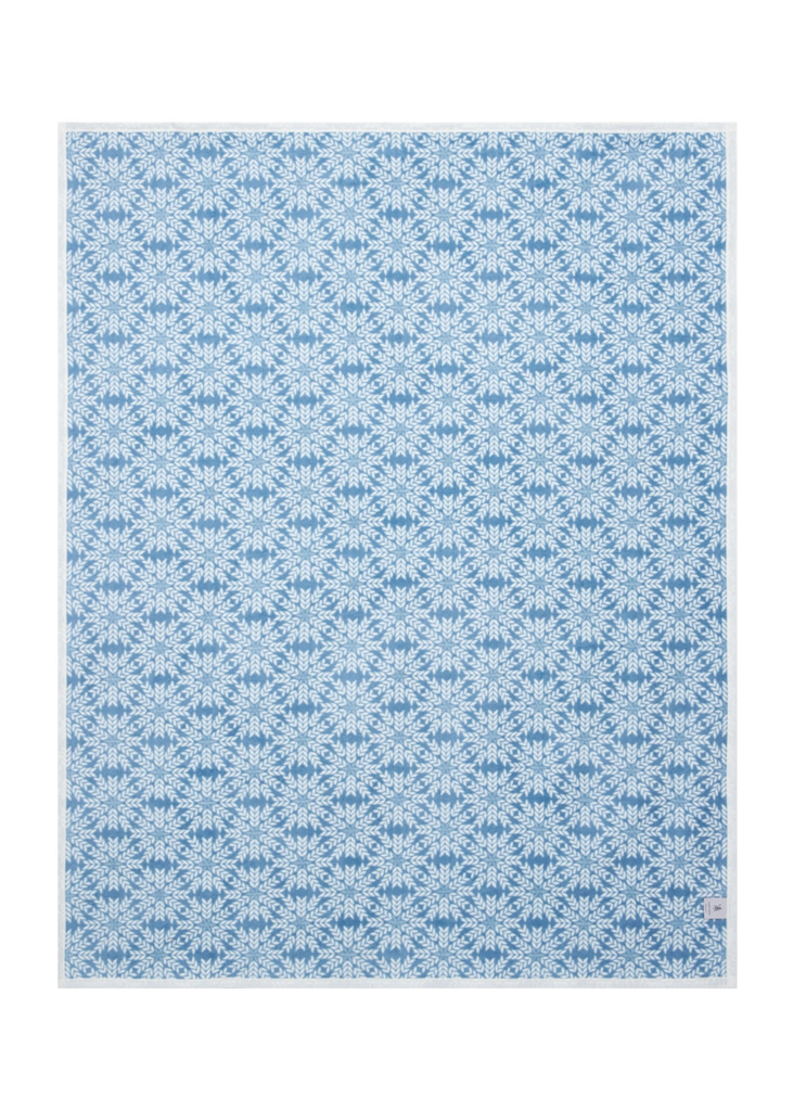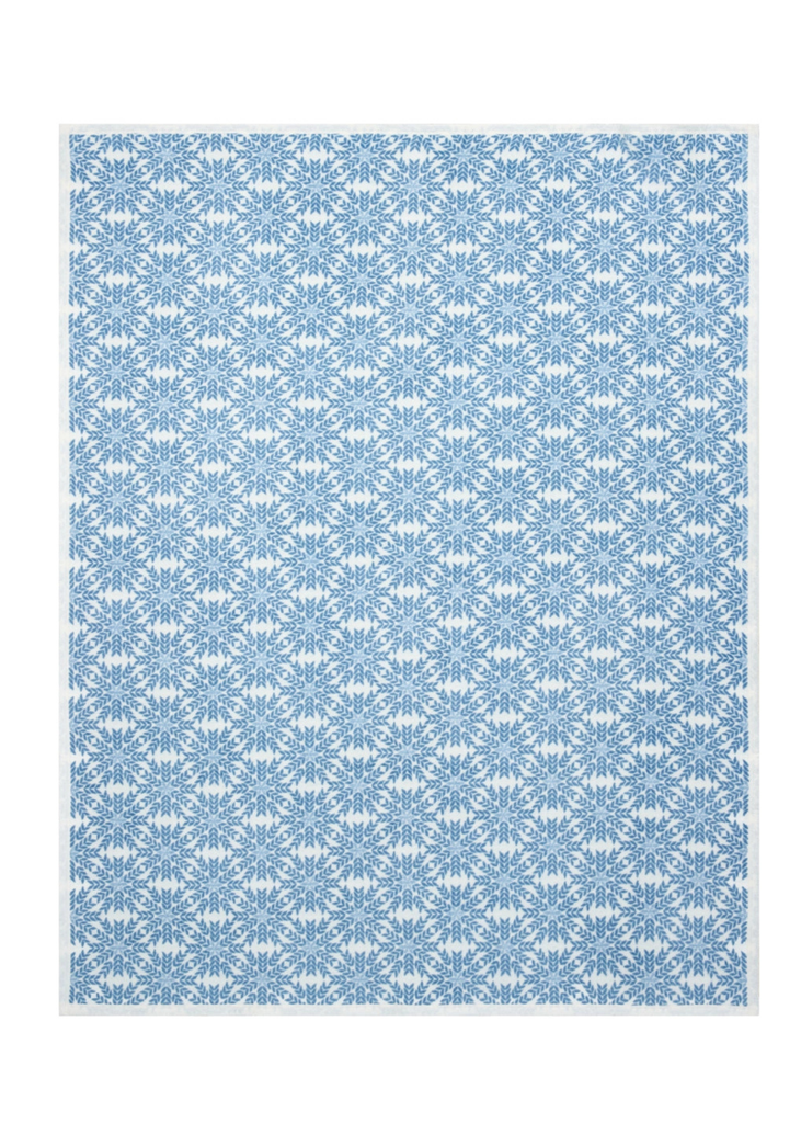 With quilt-like snowflakes in icy-blue tones, here’s a study in winter coziness—layered, peaceful and perfectly soft.