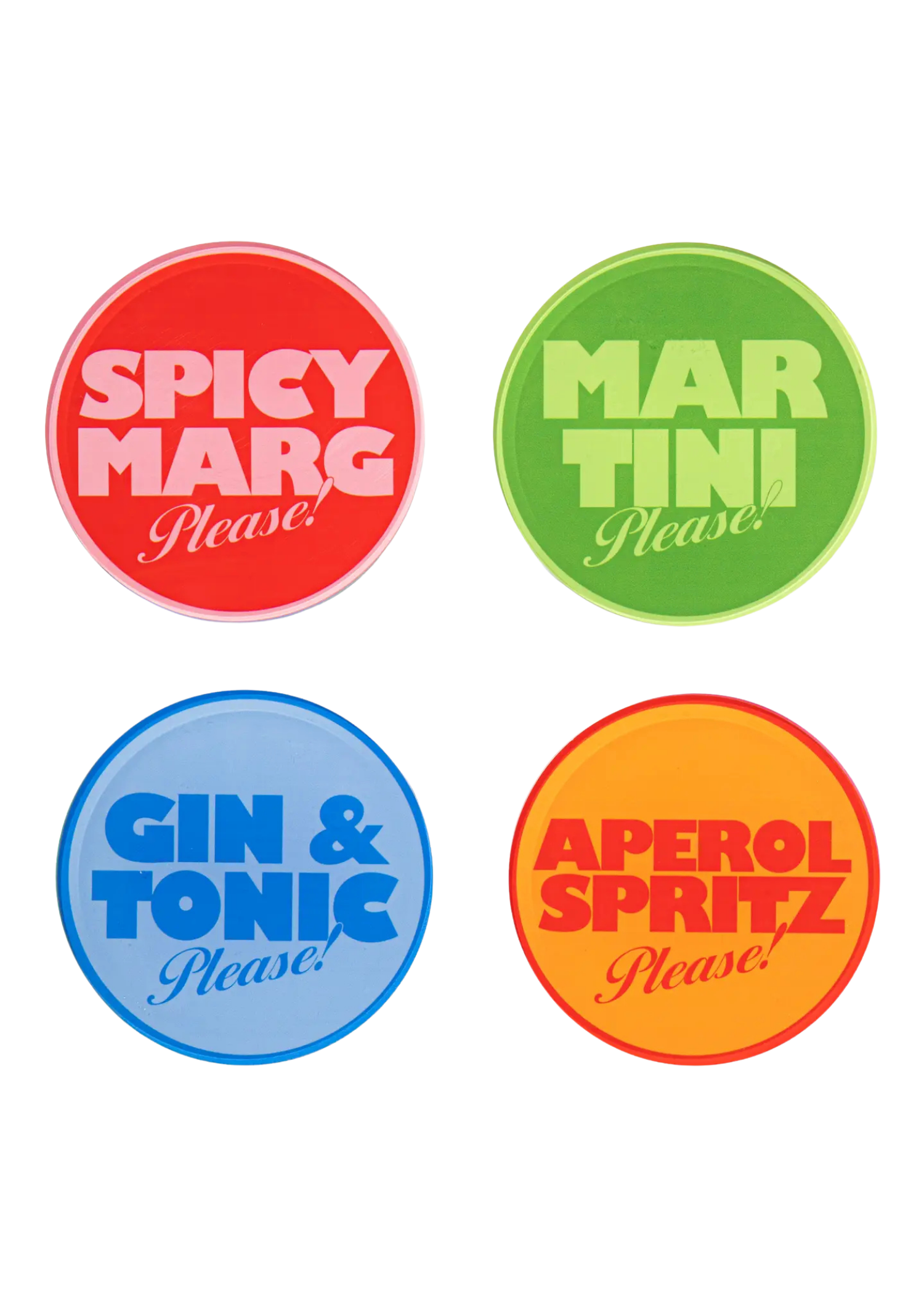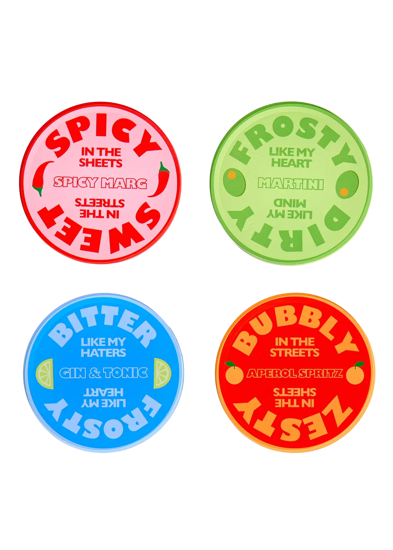 Cheers to all of your favorite drinks! These cocktail coasters are perfect for protecting your surfaces while sipping on your cocktail! Each coaster has a design on the front and the back- double the designs= double the fun! Drink up!