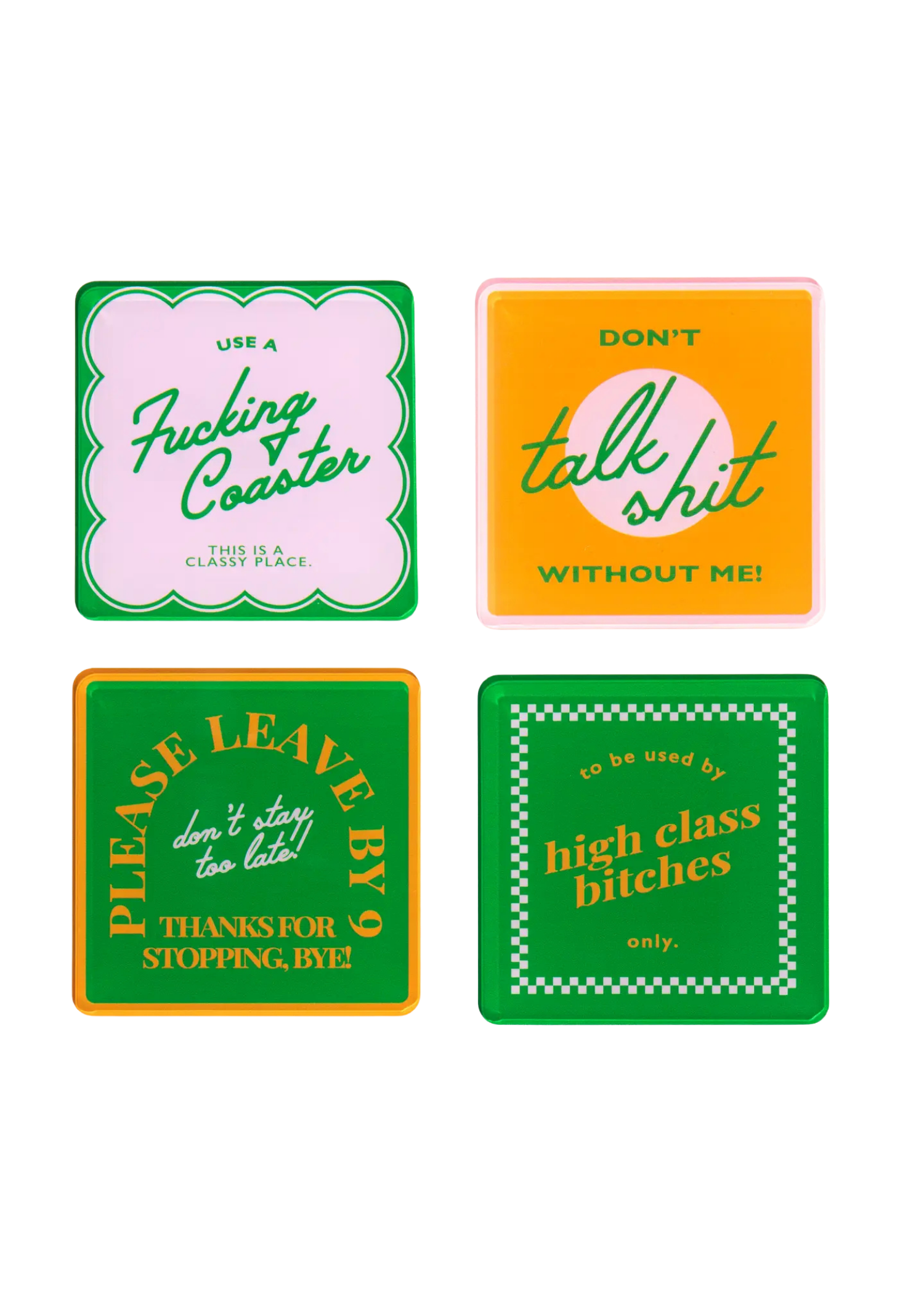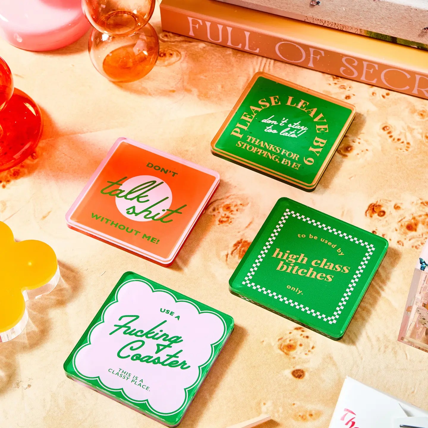 Add a pop of attitude to your coffee table with these Snarky Coasters. Made of acrylic, each coaster delivers a playful message to anyone who thinks they're above using a f*ing coaster. Keep your surfaces protected and your guests entertained.