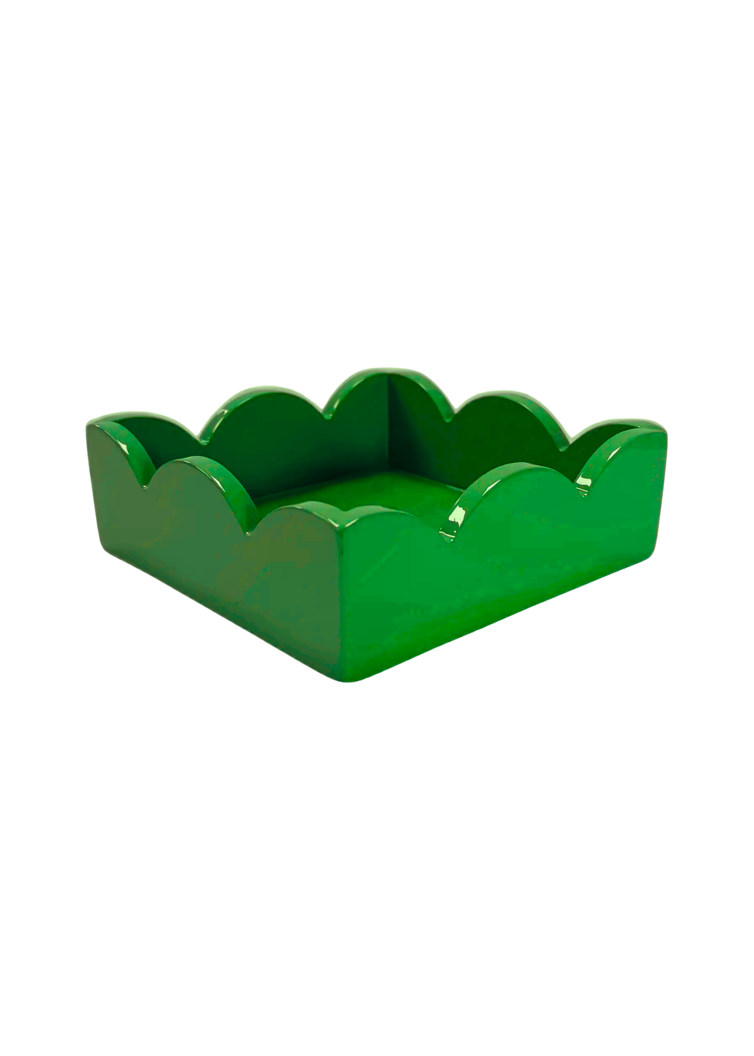 SCALLOPED LACQUER COCKTAIL NAPKIN HOLDER - GREEN