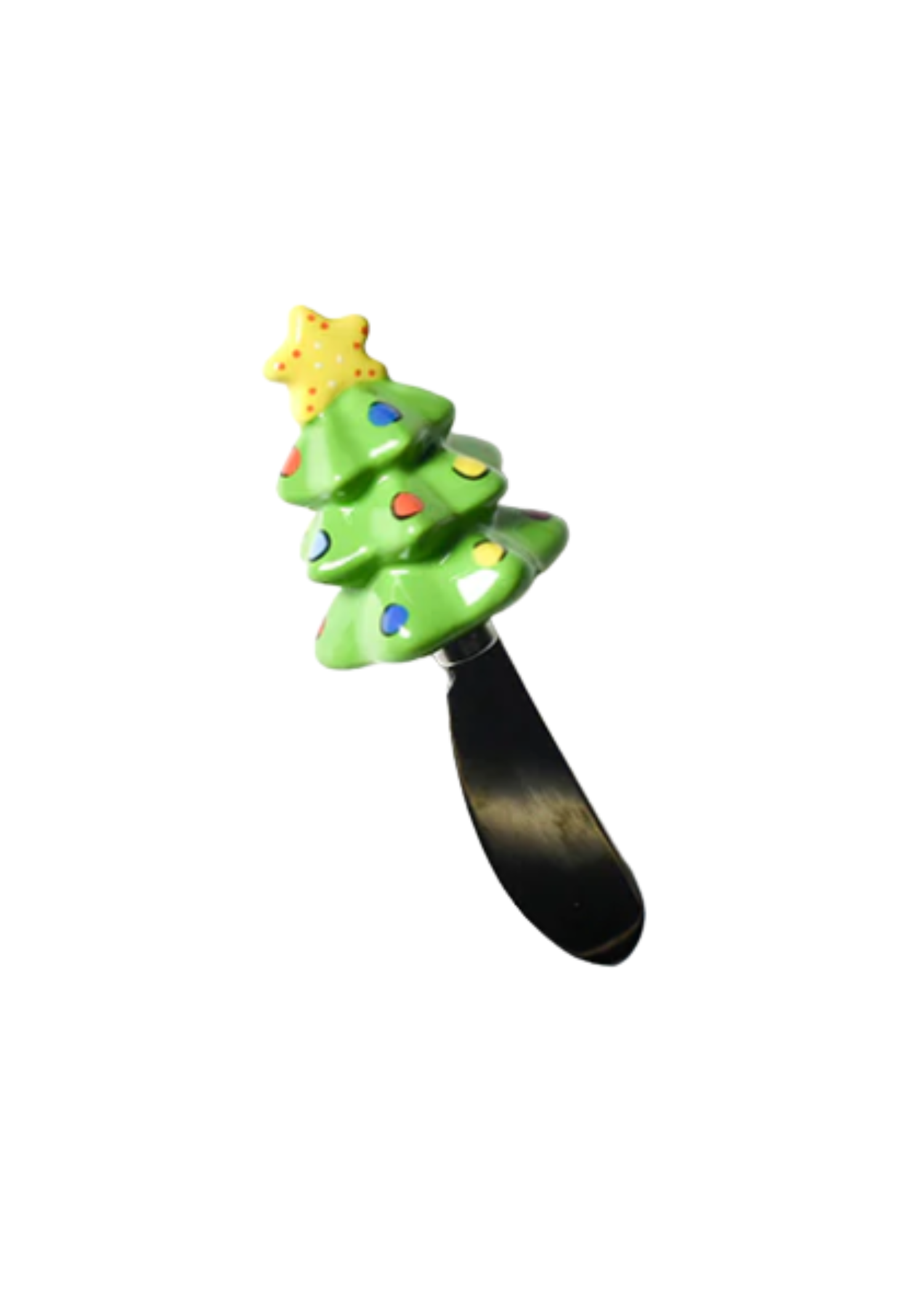 This metal spreader is cheerfully topped with a three-dimensional Christmas tree, fully decorated with lights and a bright yellow star topper. You will reach for this spreader all season long to add a pop of color and cheerful function to any sweet or savory spread. The Tree Shaped Spreader is a thoughtful addition to a gift basket any time of year and an exciting find for the long-time Happy Everything! collector.