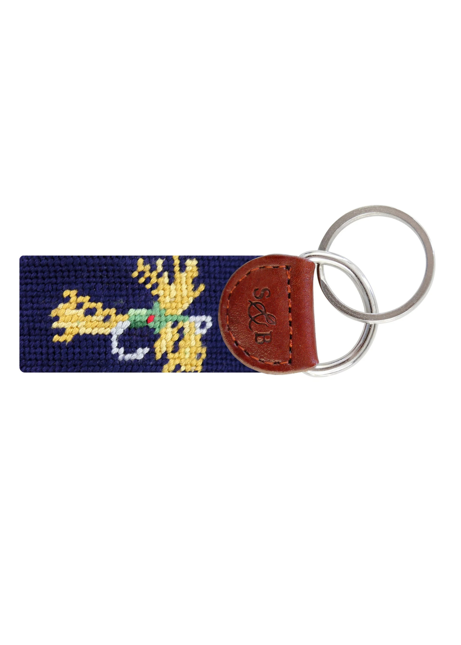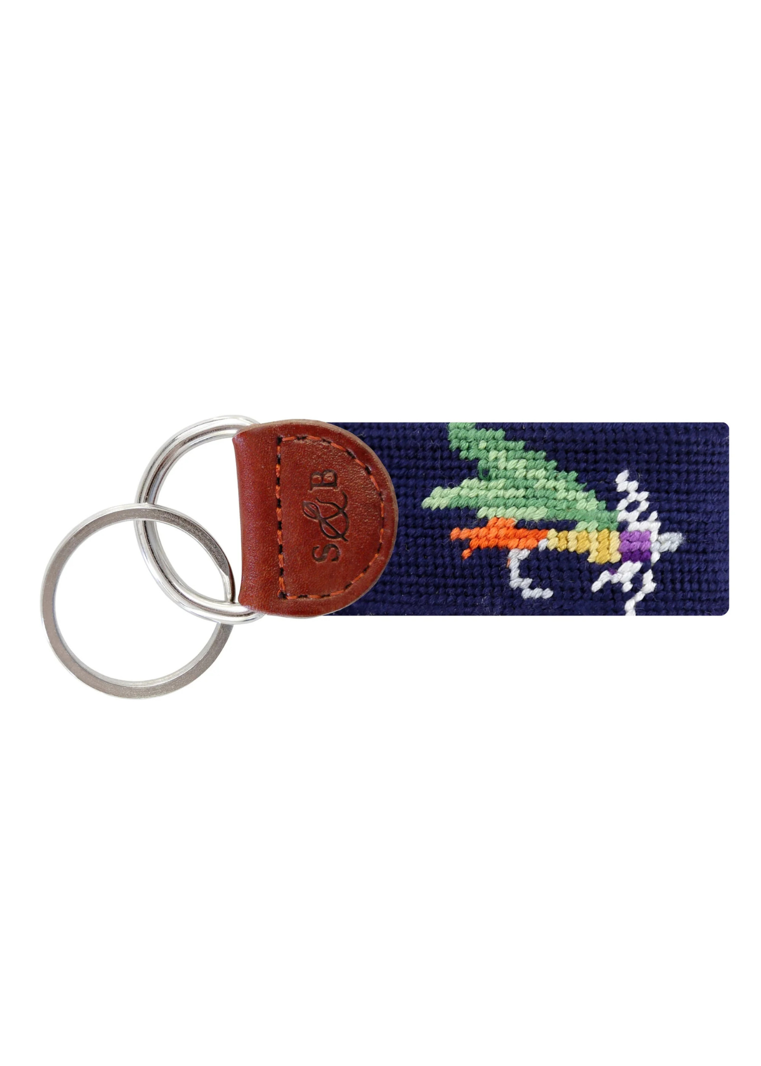 FISHING FLY NEEDLEPOINT KEY FOB - NAVY