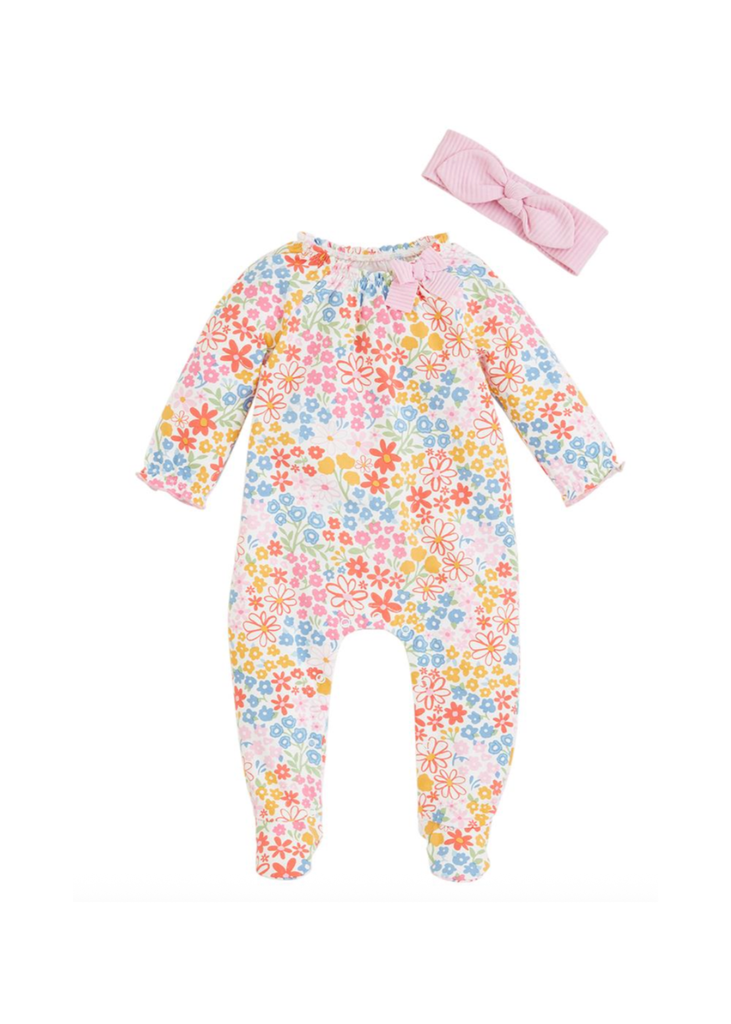 BABY RAINBOW FLORAL SLEEPER AND HEADBAND SET