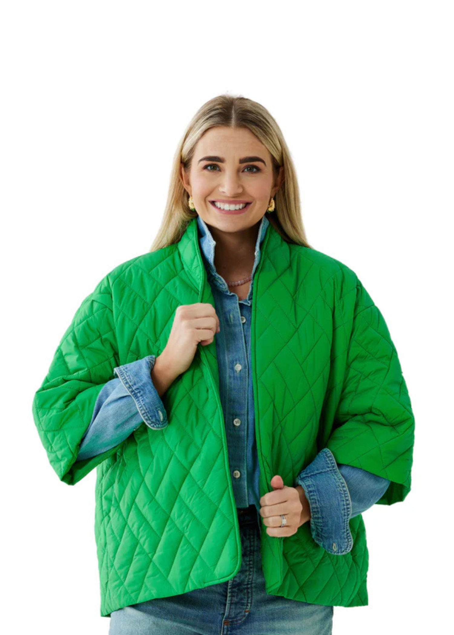 Stay warm and bright in the Penny Puffer jacket! The 3/4 sleeves and lightweight material make it perfect for layering on cooler days! Dress it up or down– we're obsessed!