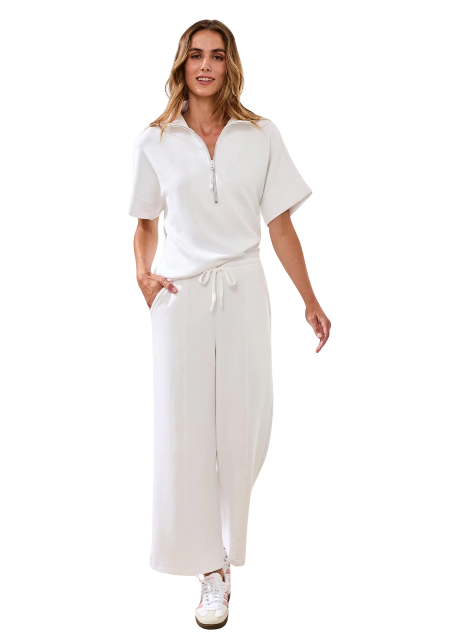 Your new favorite sport pant—wide-leg, full length, and crafted from ultra-comfortable Techno Lux Scuba. The adjustable drawcord waist personalizes your fit, while the wide leg silhouette allows for total freedom of movement all day.