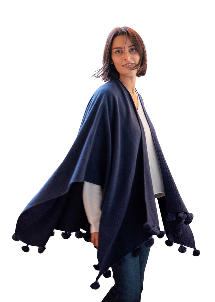 BAYSIDE HERRINGBONE SHAWL - MIDNIGHT NAVY