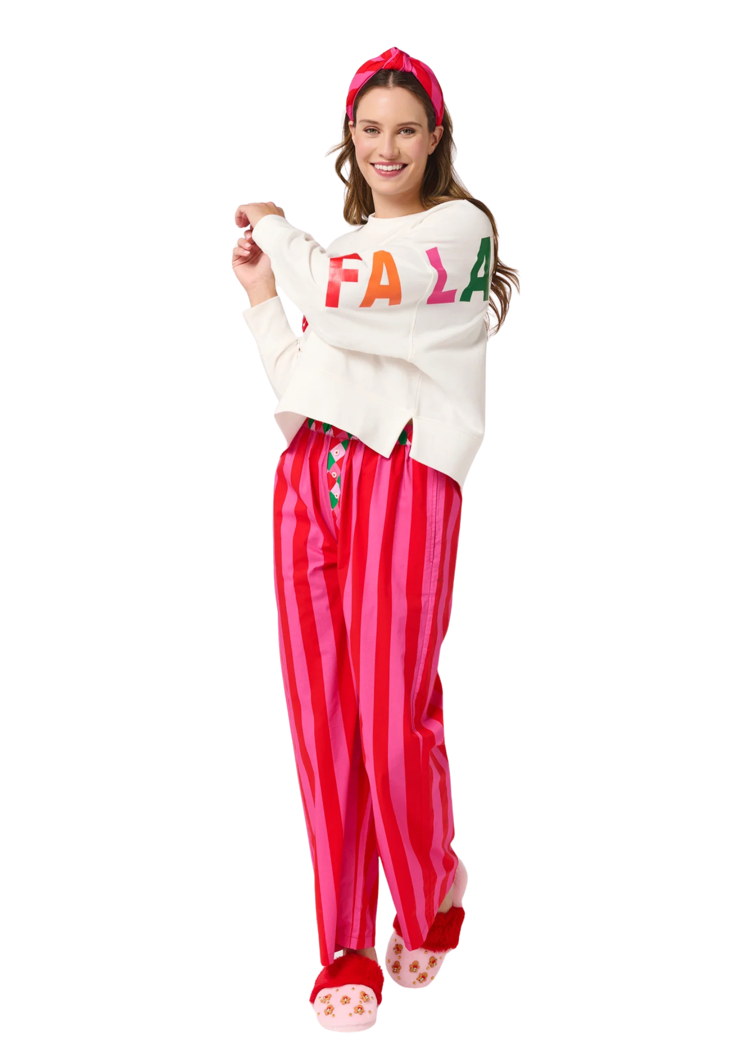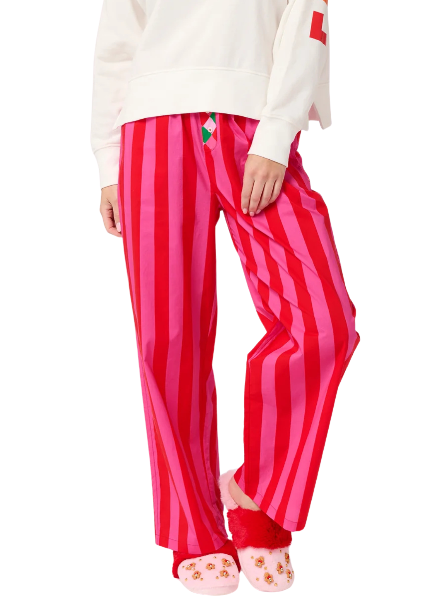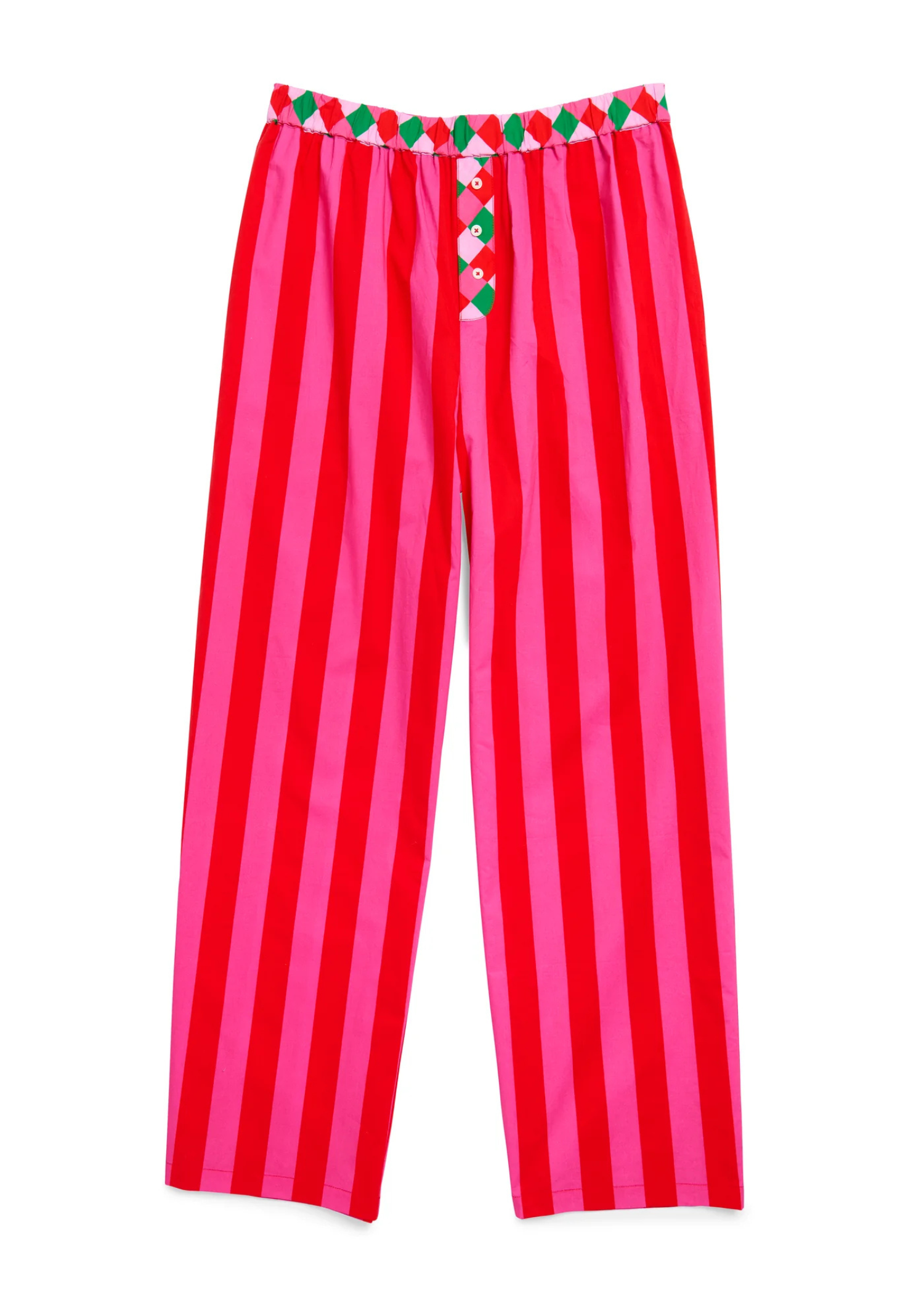 Cozy up in color with the Festive Stripe Boxer Pants! Featuring bold vertical stripes, playful diamond-print waistband details, and faux buttons, these pants are made for lounging in holiday style. The relaxed fit and soft cotton feel keep things comfy from couch time to cocoa runs.