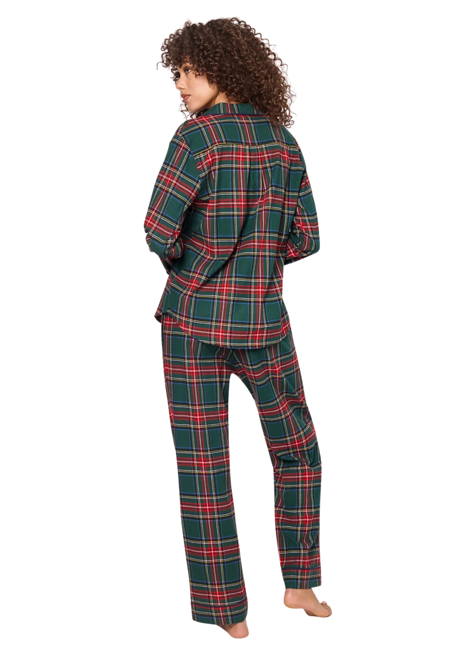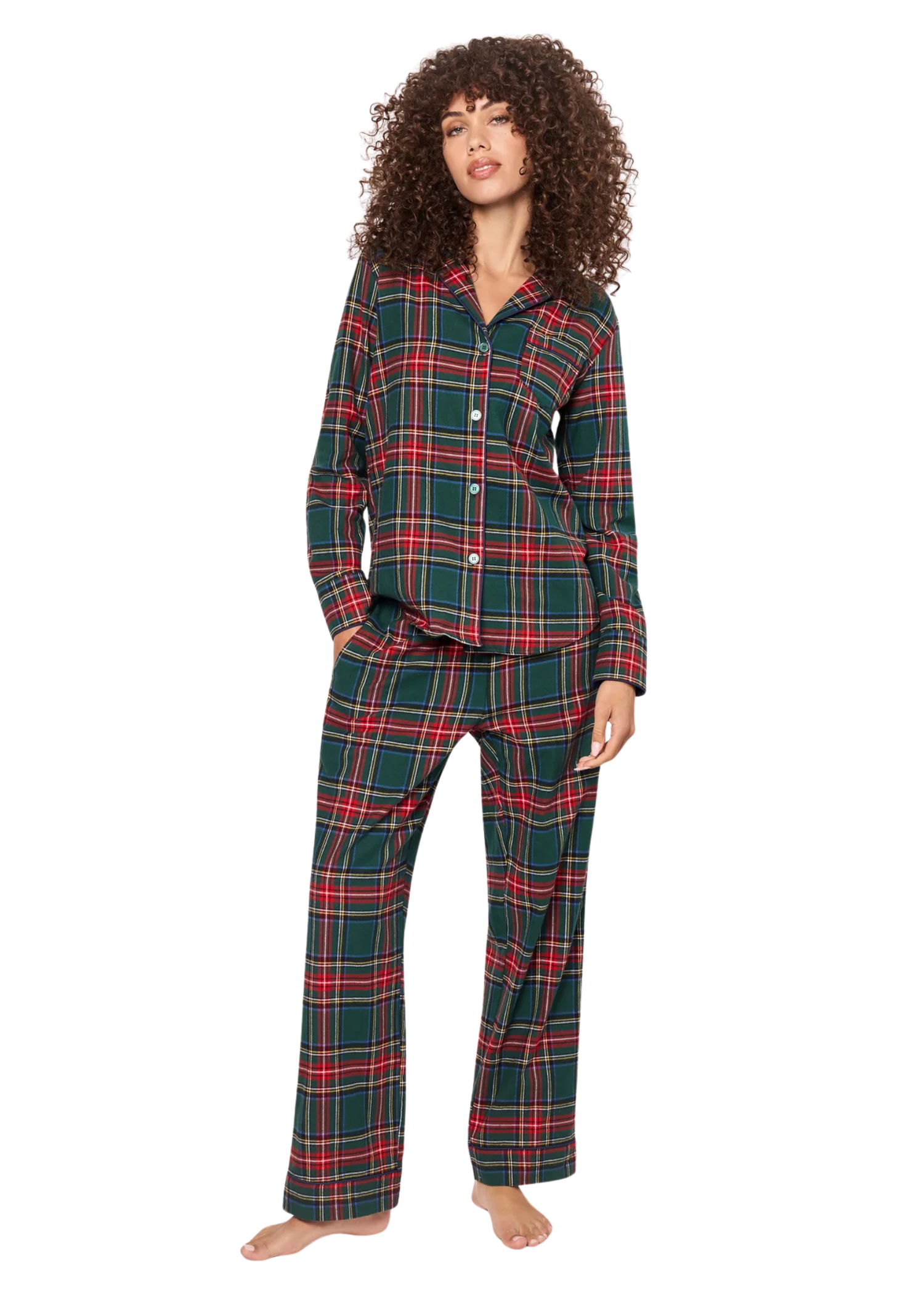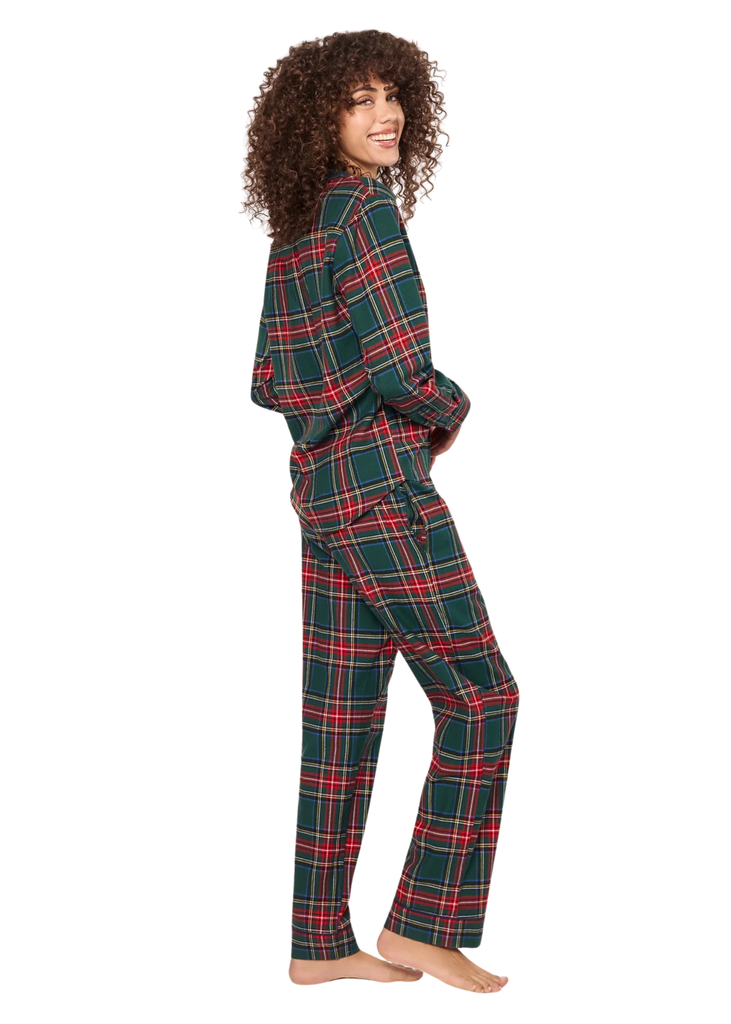 Ring in the season with a festive new plaid that's brimming with holiday cheer. The Kensington Tartan puts a colorful spin on a classic design, ideal for cozy nights in as you watch the snow fall. This classic twill pajama set is accented with navy piping and finished with logo buttons.