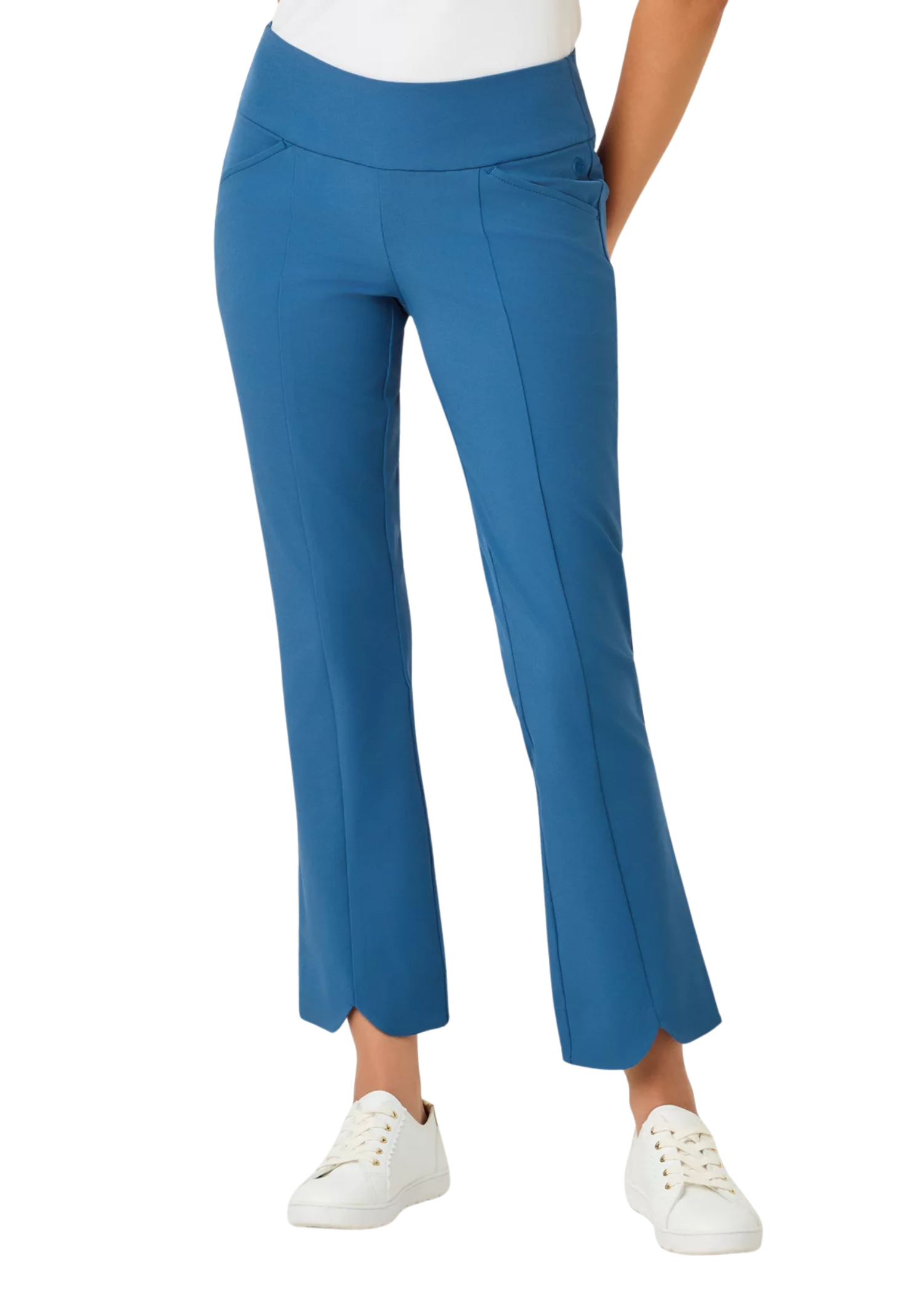- UPF 50+ Luxletic® pull-on golf pant with a scallopped hem and front and back pockets.