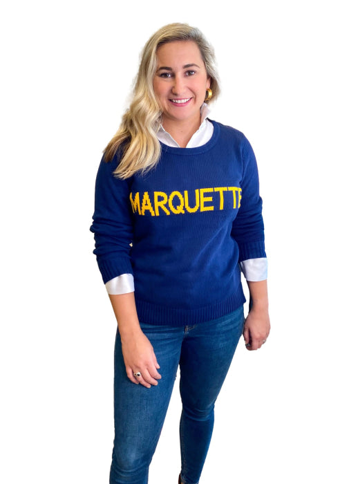 A custom sweater exclusively at The Navy Knot! This sweater is for showing off your Marquette pride throughout every season.