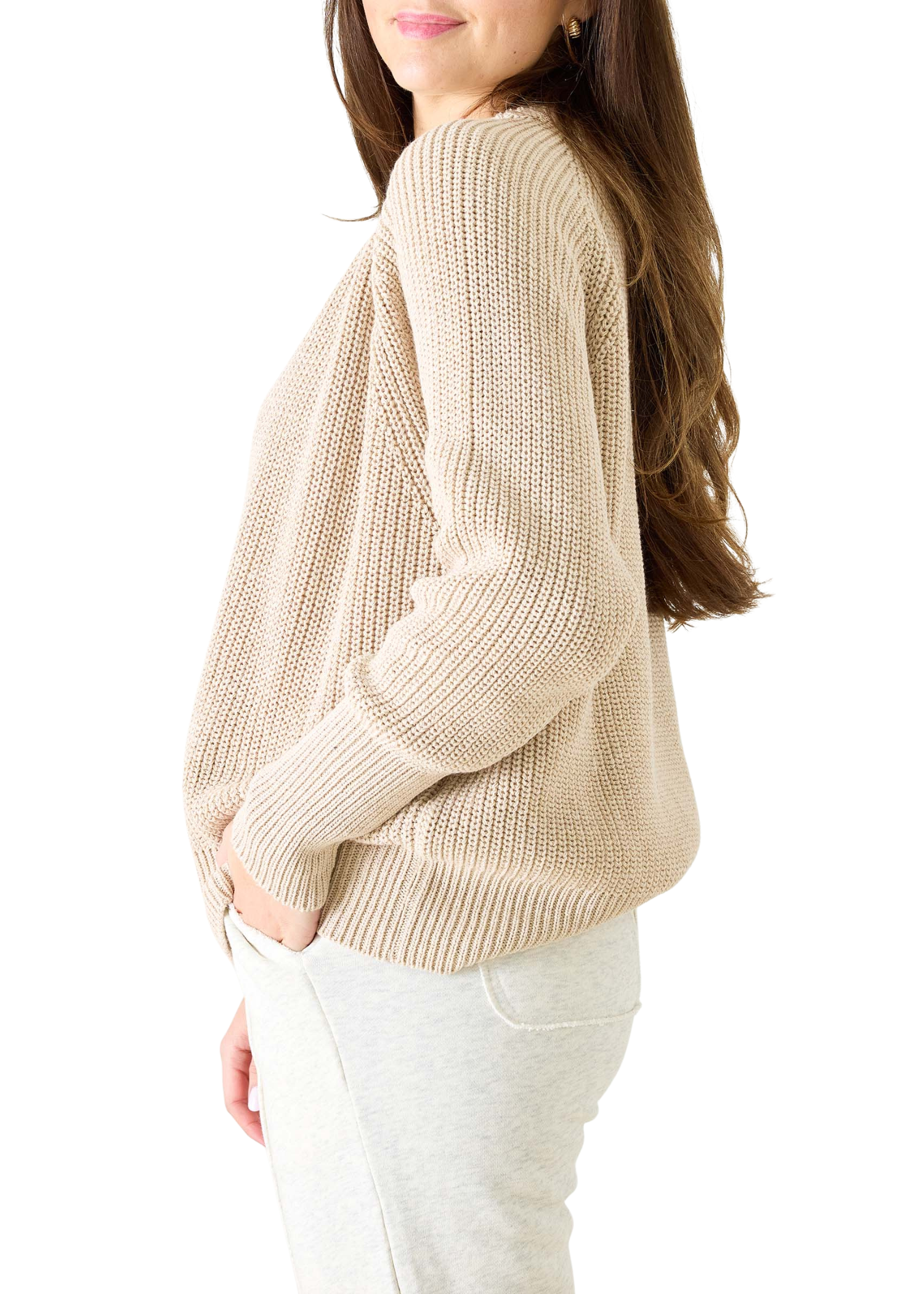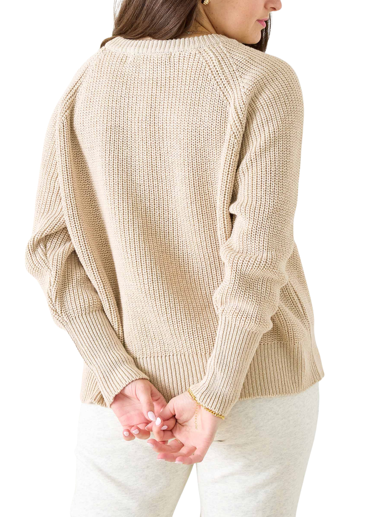 This fisherman knit in an intentionally oversized fit will keep you warm without making you hot. Throw it over your shoulders for a pop of color, wear it on it's own or layer it, this Salty Cotton Crewneck is made for year-round.