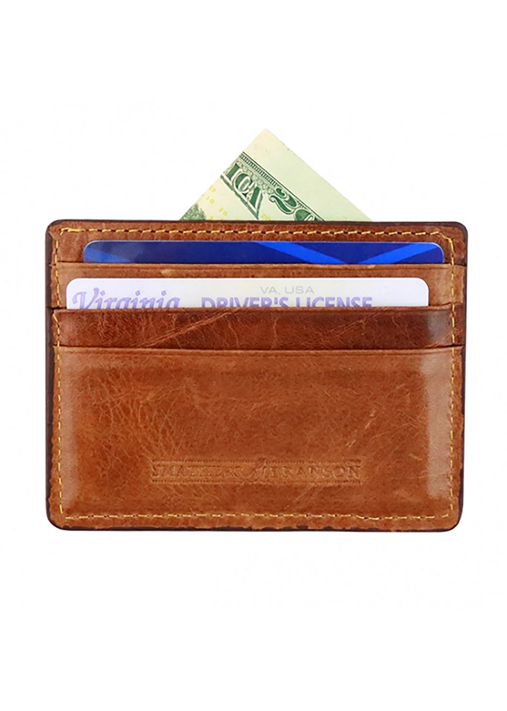 This hand-stitched needlepoint card wallet is finished with English bull hides tanned in Italy. This slimmer wallet style (4” by 3”) provides enough room for cards, cash, and an ID, but does not take up too much room in the pocket or bag. Great for carrying in your front pocket and something less bulky for a night on the town!