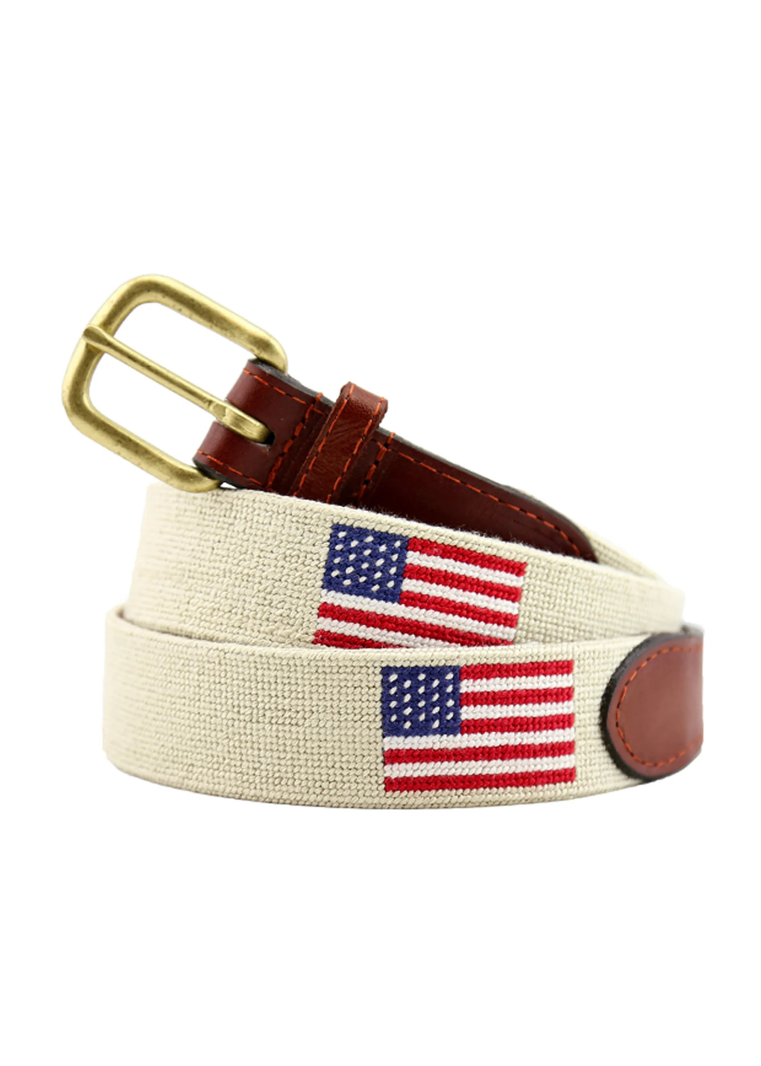 AMERICAN FLAG NEEDLEPOINT BELT - LIGHT KHAKI