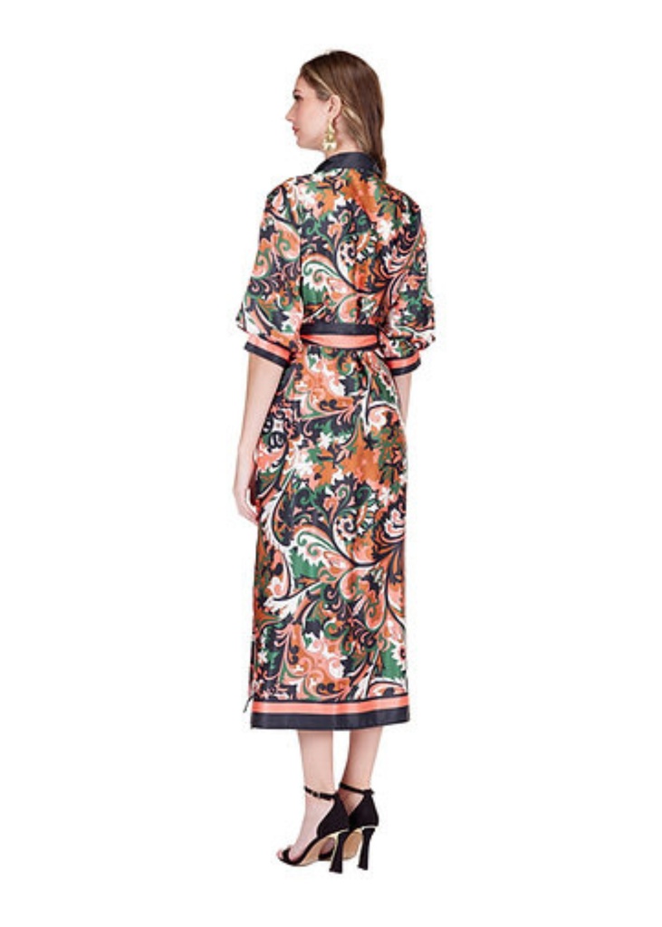 AUTUMN SCROLL MAXI SHIRT DRESS