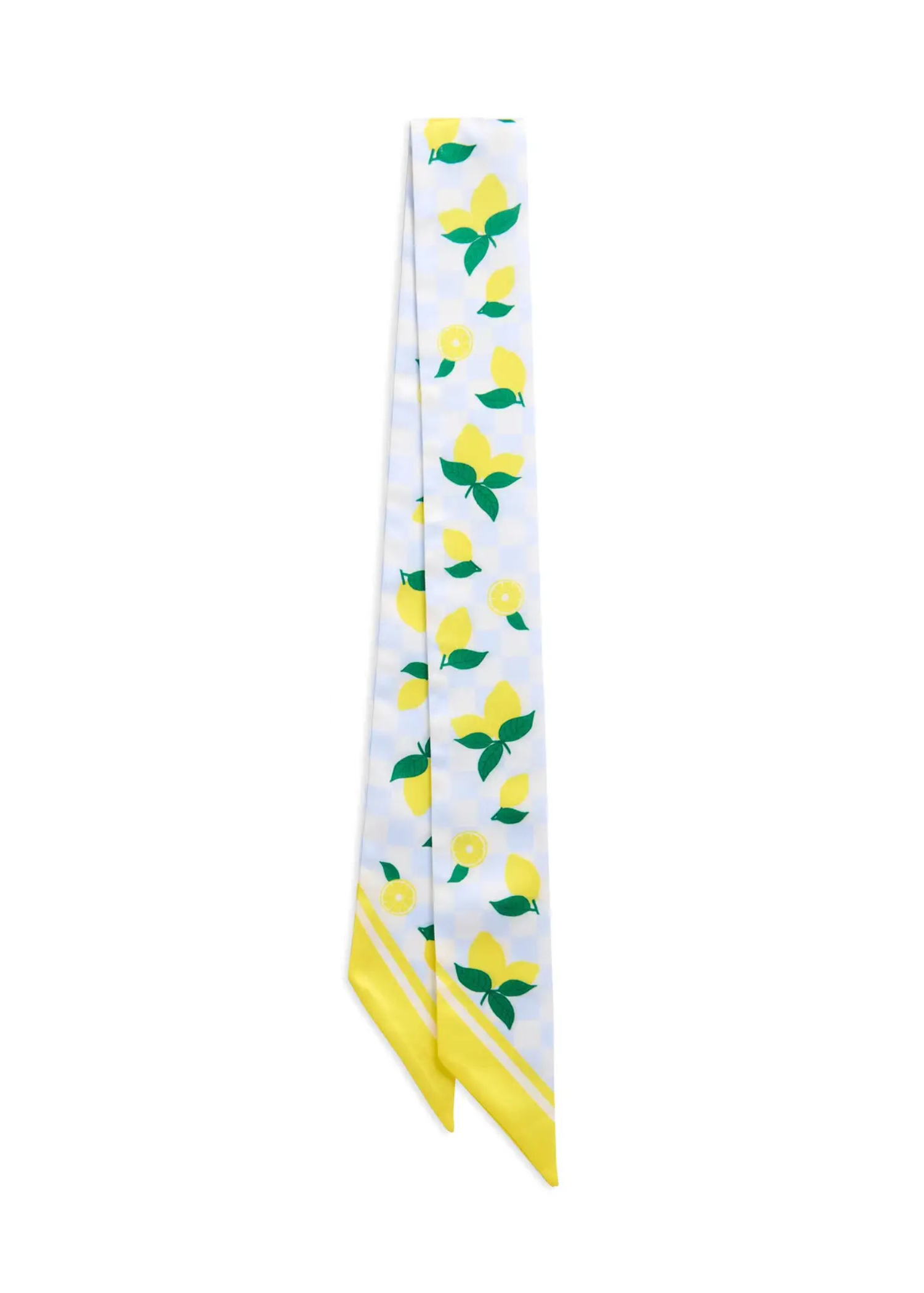 Introducing the Citrus Twilly Scarf. This scarf is a blend of sophistication and versatility, designed to add a splash of color to your outfit. With a length of 37" and width of 2", this polyester silk scarf is the perfect accessory to elevate your style. Use it as a hair accessory or tie it to your bag - the possibilities are endless.