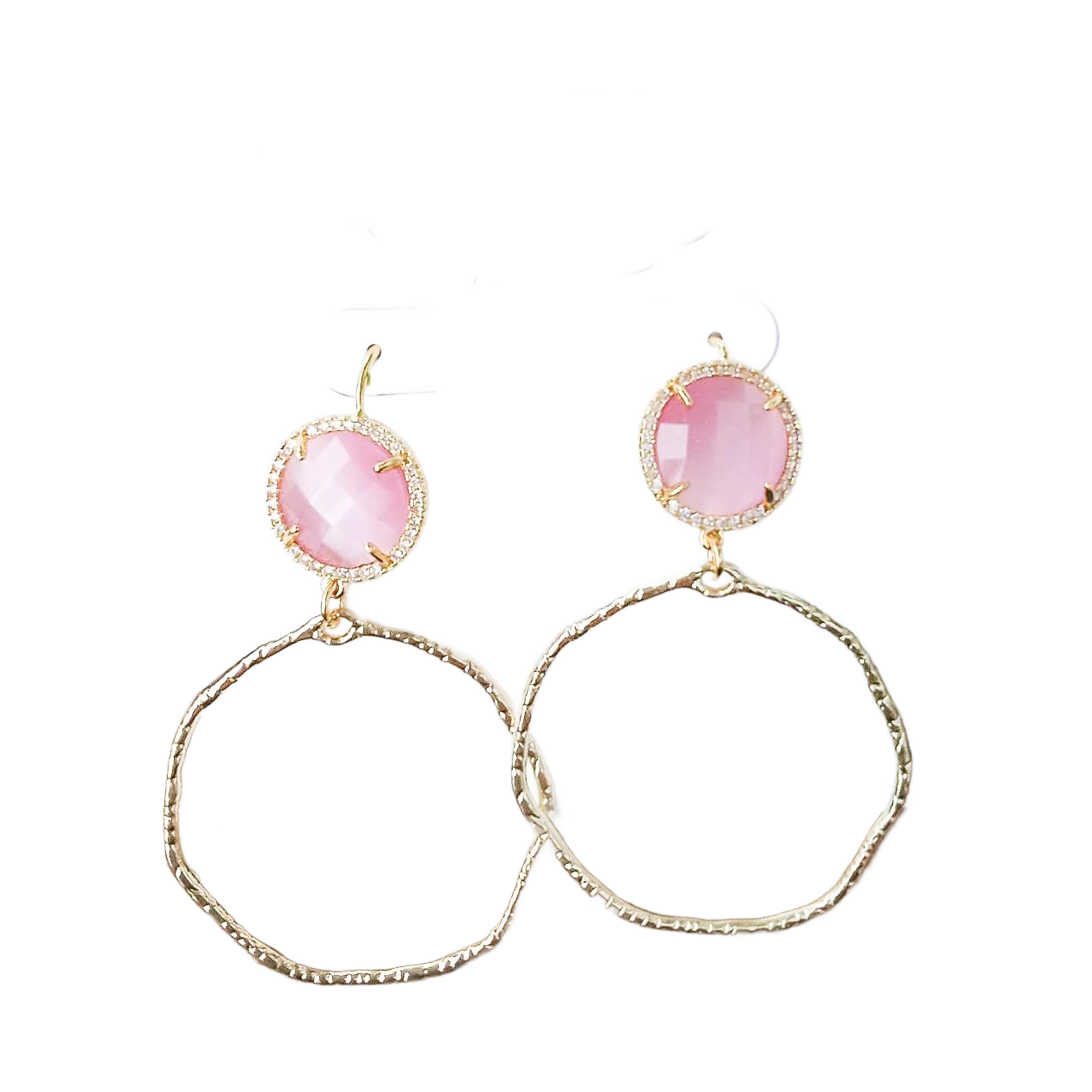 GEMSTONE HOOP BEZEL EARRINGS - BLUSH