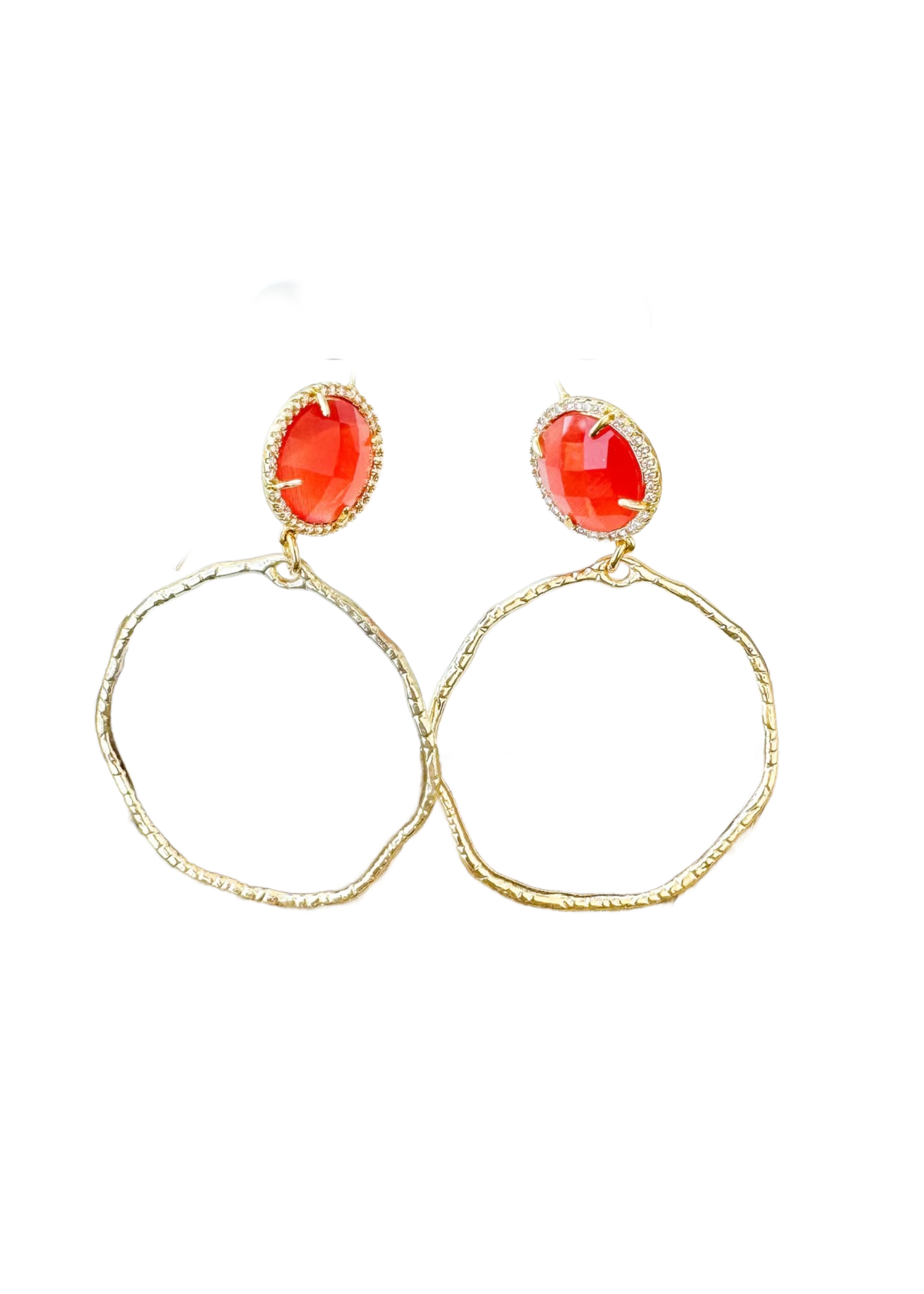 GEMSTONE HOOP BEZEL EARRINGS - TANGERINE