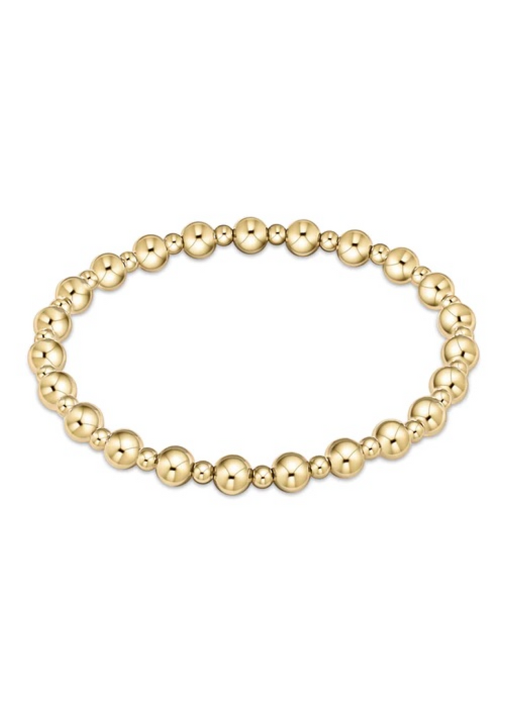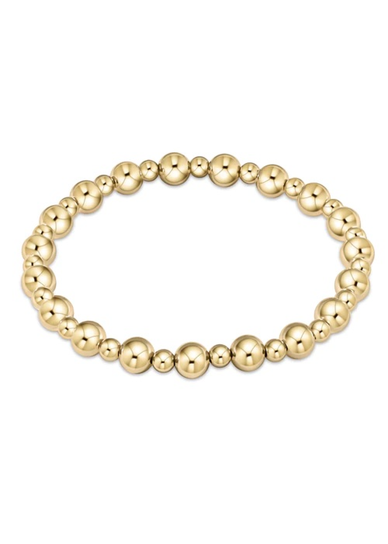This bracelet is a classic gold beaded bracelet with alternating bead sizes.
