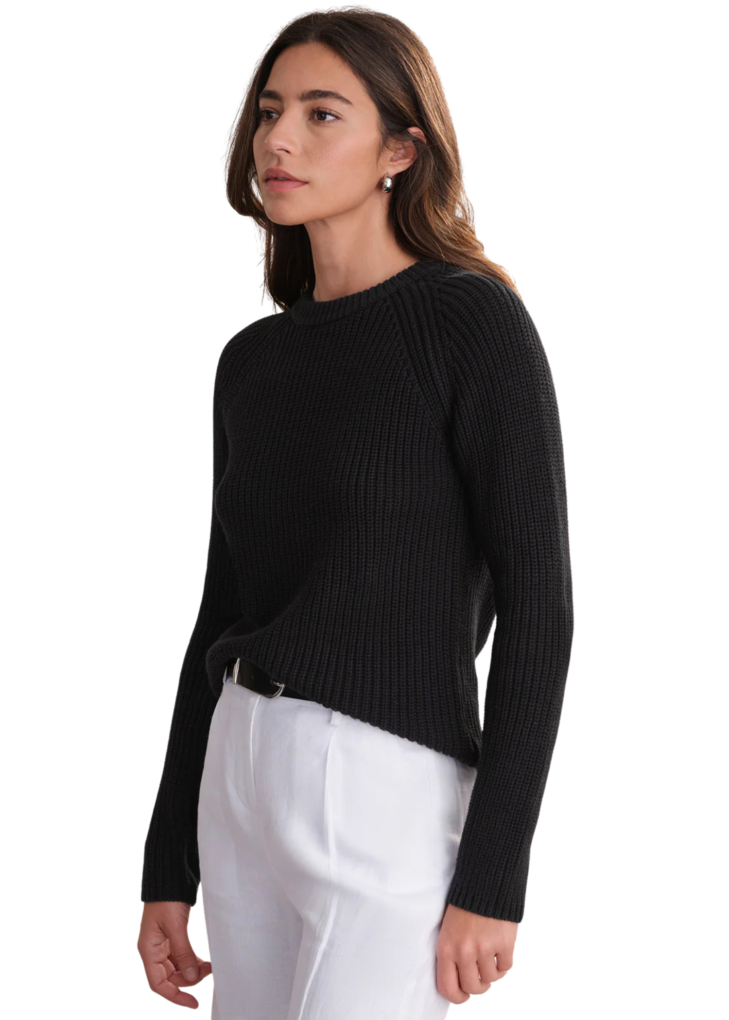 Jane is a new take on the classic cotton shaker stitch sweater that offers a shorter, more fitted silhouette featuring a sporty raglan sleeve.