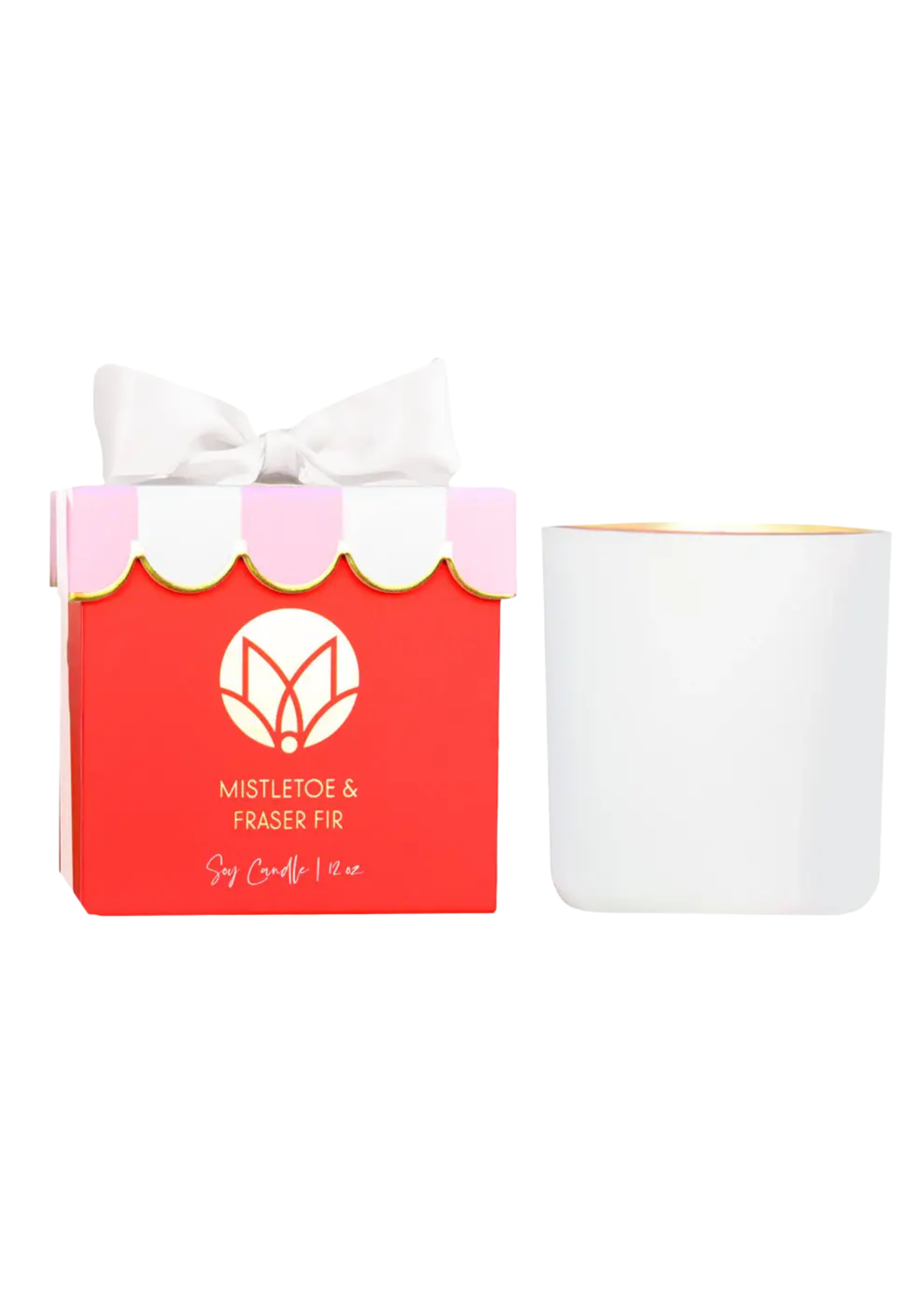 Magical notes of crackling pine, fir, and sandalwood. 12 oz, 80 hour burn time. Hand-poured in Mississippi. Matte white vessel with gold-foiled interior nestled in a beautiful gift box, wrapped with a satin bow. Perfect for this gifting season.